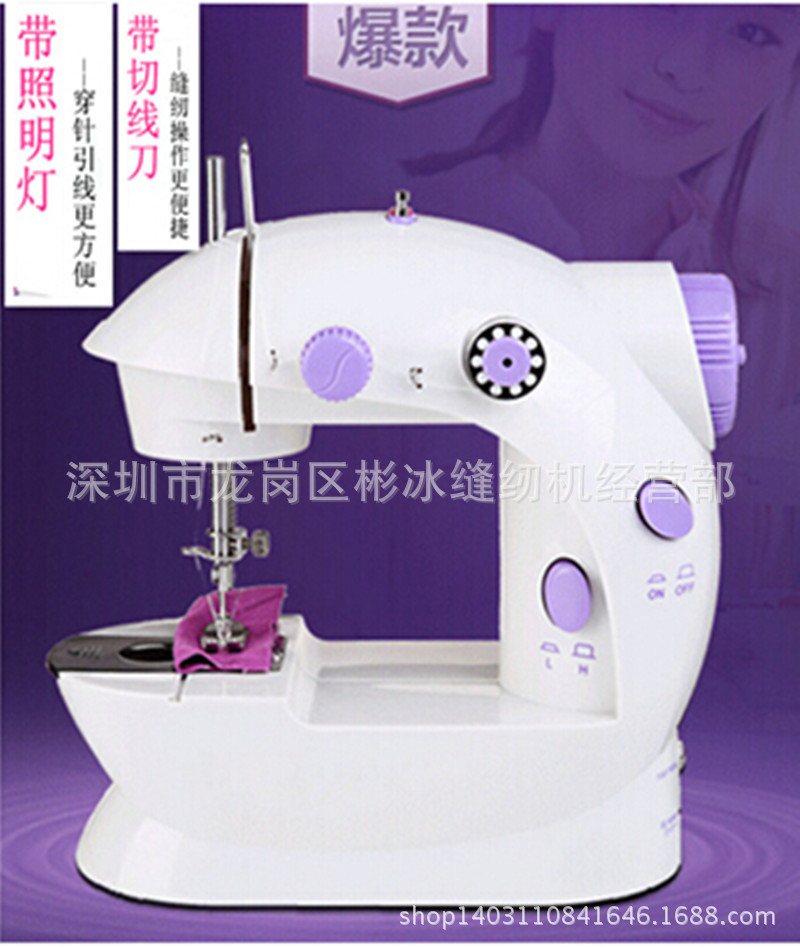 家用带灯带刀电动迷你202型缝纫机多功能小型吃厚缝纫机手动脚踏两用