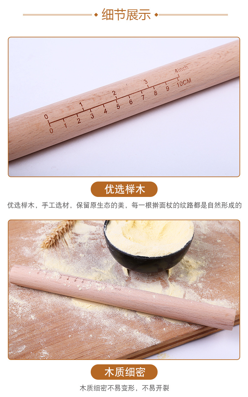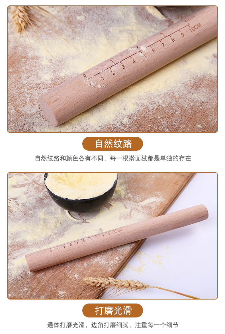 Деревянная скалка для теста с мерной шкалой, для выпечки, для приготовления пельменей, кухонная скалка из бука, экспорт