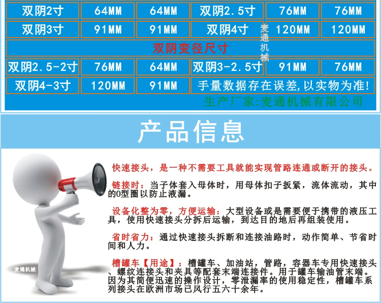 Maitong машины и оборудование оптом Автоцистерна двойной отрицательный конец быстрое соединение 4 дюйма 2 дюйма 2 дюйма масляная Труба Совместная автозаправочная станция