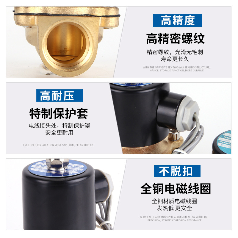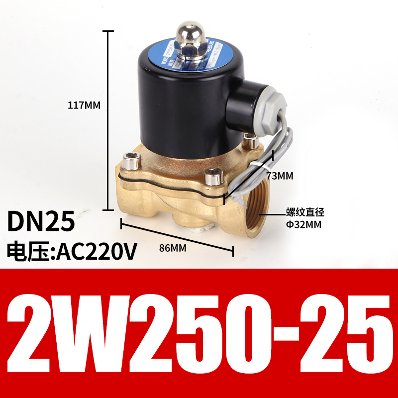 220 В медный водяной электромагнитный клапан нормально закрытый латунный Электрический водяной клапан 4 точки 2W160-15 клапан 025-08DN50 25