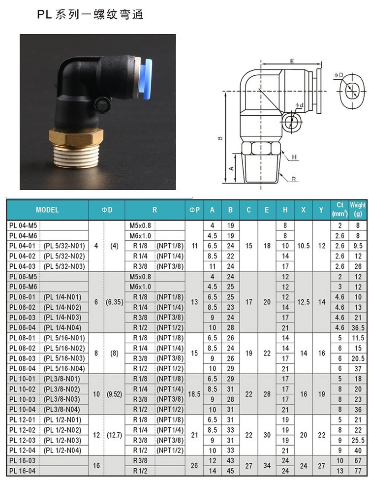Пневматическое соединение газовой трубы Быстроразъемное соединение резьбовое колено PL8-02/4-M5/6-01/10-03/12-04