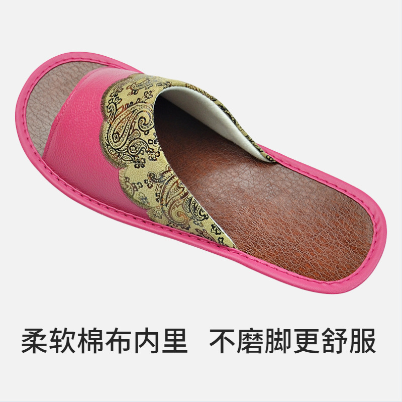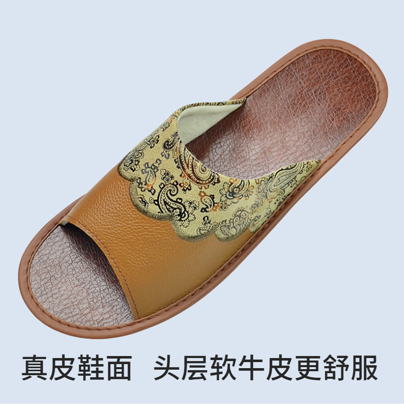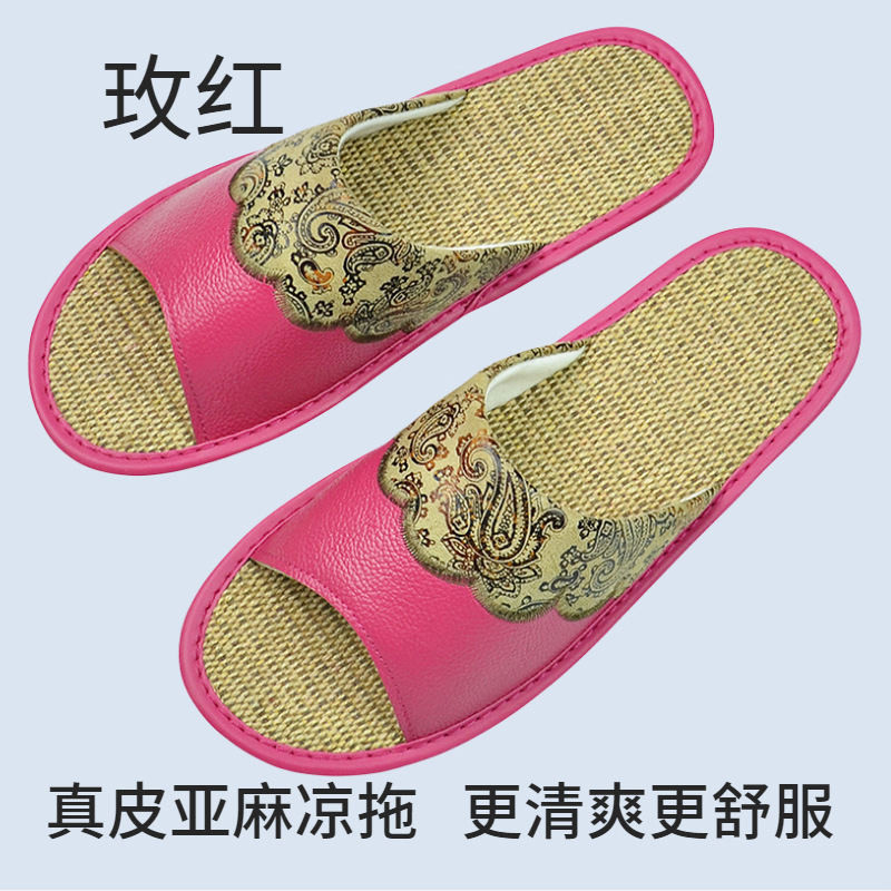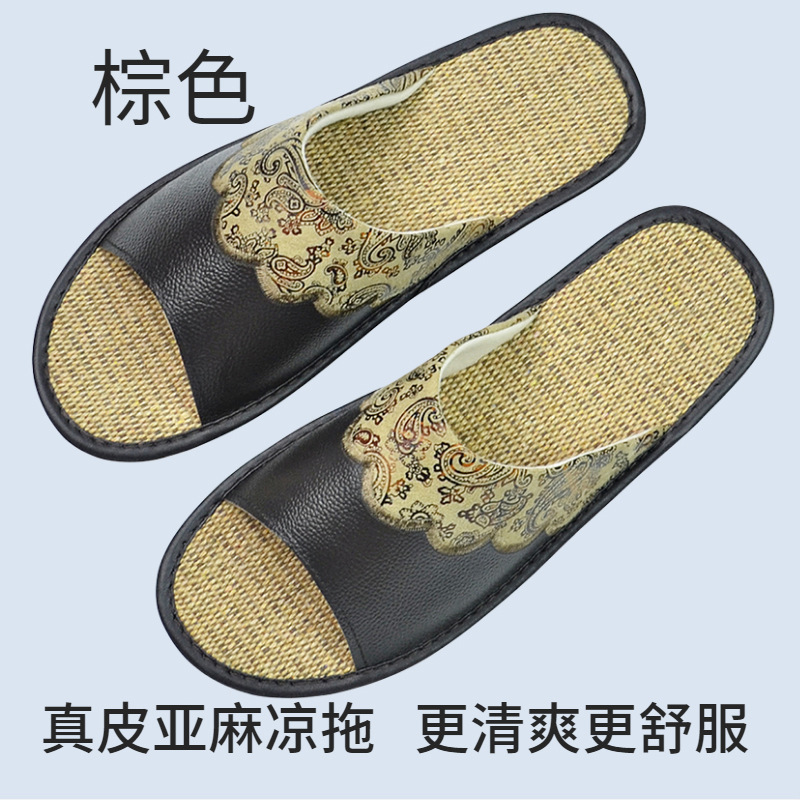 Первый слой кожаных льняных тапочек с вышивкой, домашние кожаные тапочки, мужские и женские противоскользящие мягкие Тапочки