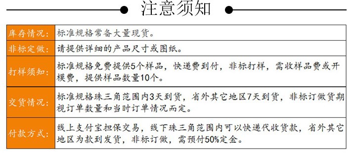 2.如遇到先签收再打开包装查看的情况,买家应当要求承运人当场监督并打开包装查看;如发现不一致,应当及时与卖家联系和在签收单上加注详细情况并让承运人签字确认。如果买家在没有与我们联系的前提下签收完货物即表示默认接受淘宝规则中的表面一致规则。谢谢配合!