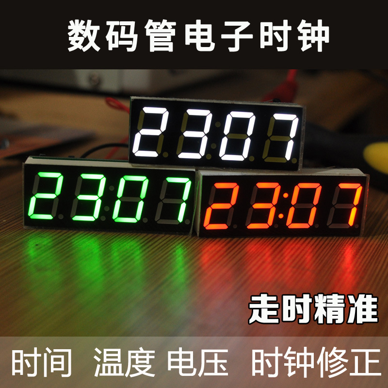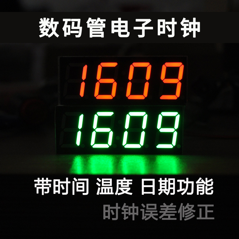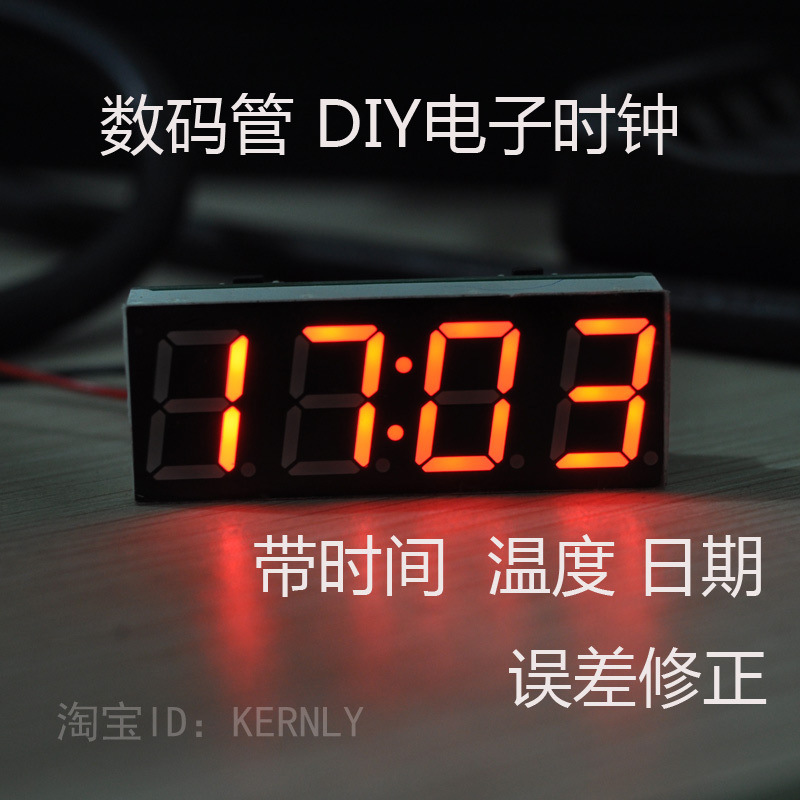 本品为DIY数码管电子时钟,带时间、温度、日期,以及时间误差修正功能,不可多得的电子小产品。