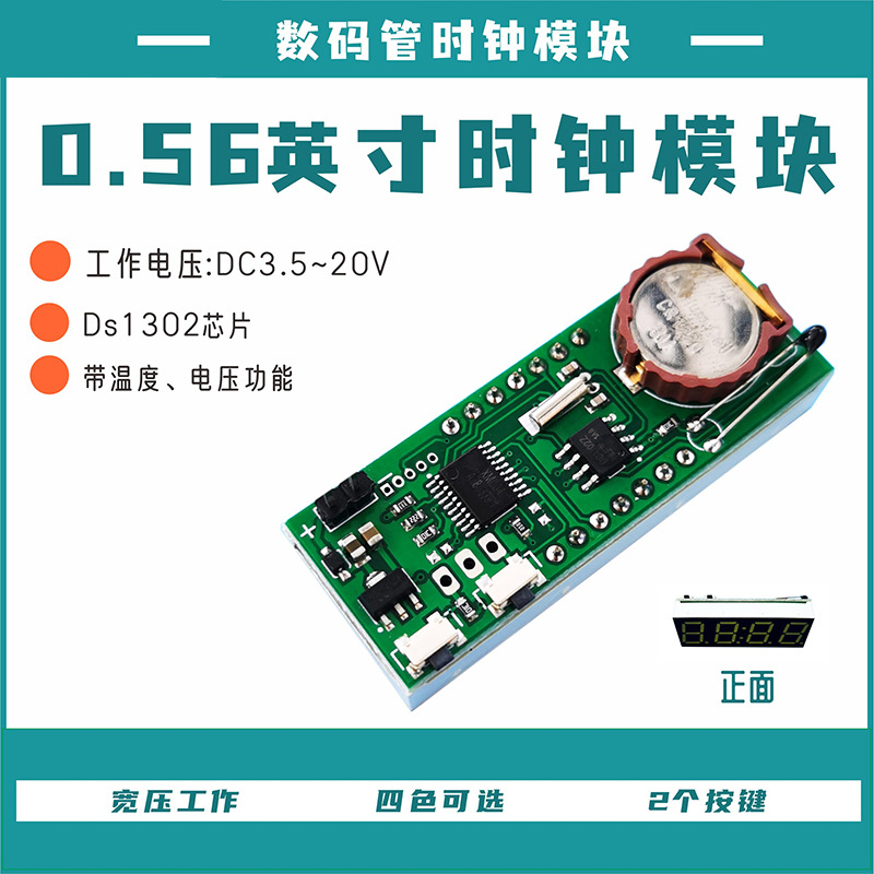 本时钟模块升级啦,供电电压改为DC4.2-30V(注意最高不能超过30V,12V,24V电瓶可直接接上使用),默认不含电源,可用充分利用家中5V标准电压手机的充电器作为供电电源(找条USB线接出来改一下就可以了)。