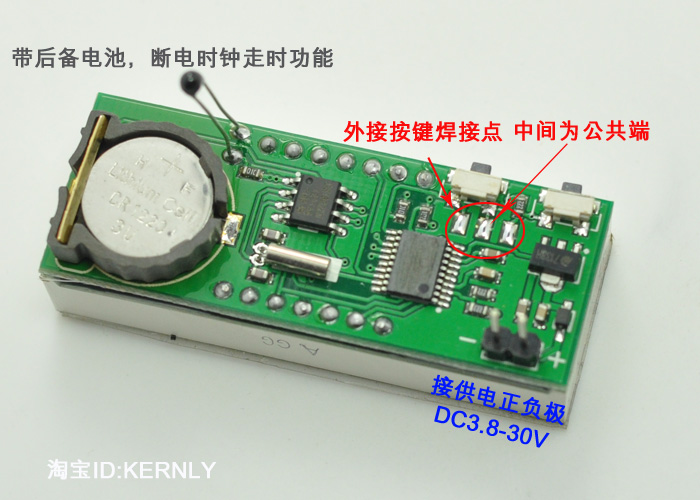 模块已带电池,确保在外部意外断开的情况下,继续走时。下次通电,不需要在重新设置时间。