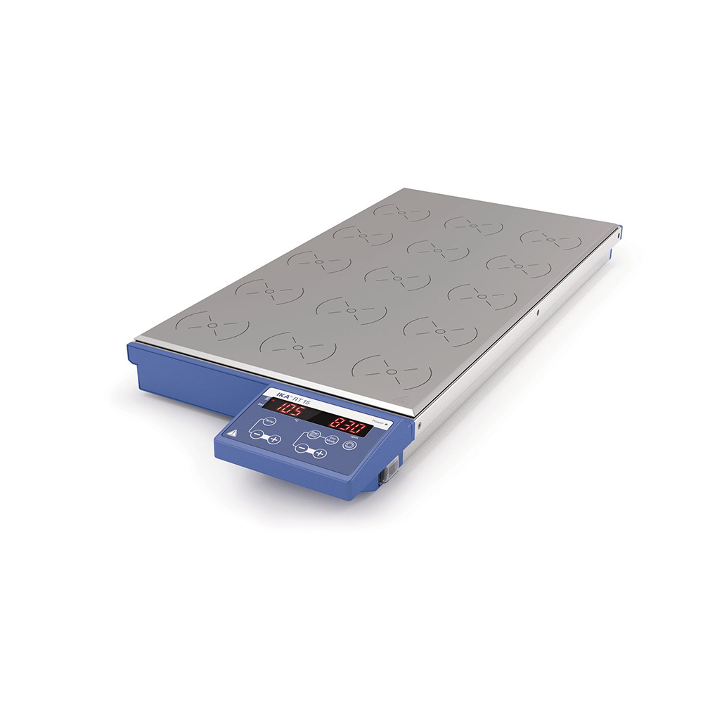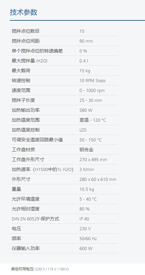 15点数显型加热磁力搅拌器,适用于同步搅拌和加热应用。磁力线圈技术提供多点一致的无噪音搅拌。加热盘面温度无级可调最高达120 °C, 使样品温度最高可加热至 70 °C (具体情况取决于容器类型). 转速恒定,即便承载重量发生变化。