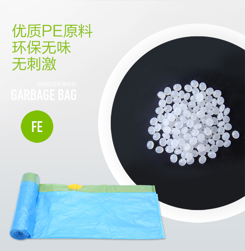垃圾袋材质:PE聚乙烯(聚乙烯:用于制作保鲜膜、食品塑料袋、奶瓶等。)