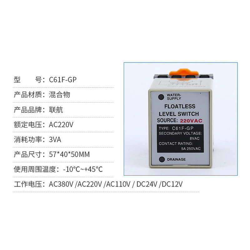 Электрический контроллер уровня жидкости United Airlines C61F-GP переключатель уровня воды реле контроля уровня жидкости счетчик воды 220 В