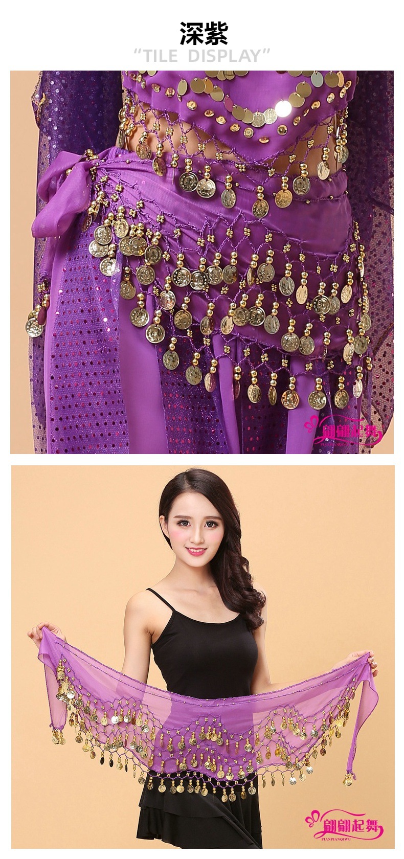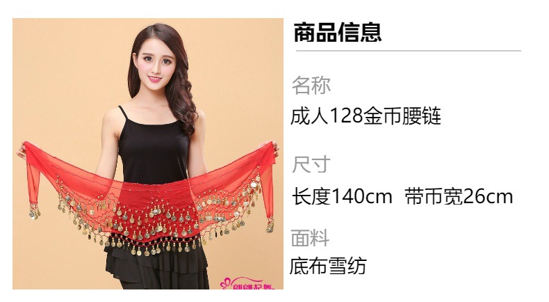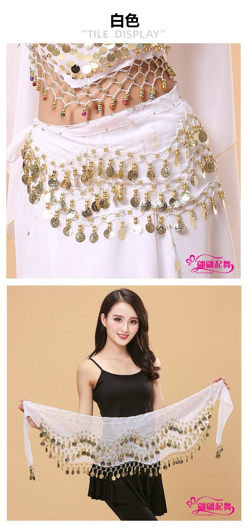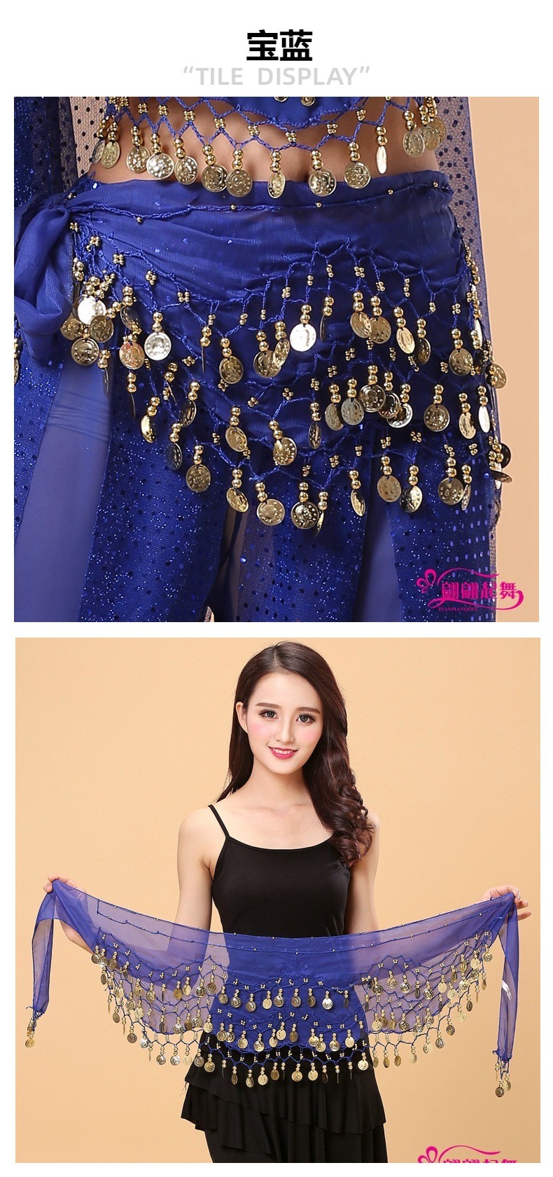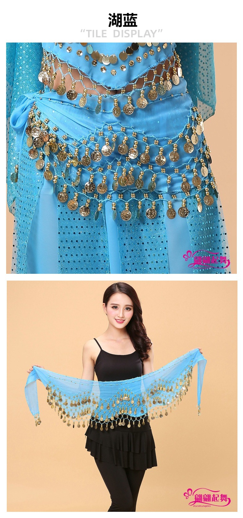 Новая танцевальная одежда для танца живота поясная цепочка пояс 128 монет шифон Йога Индийский танец Практика талии цепи аксессуары
