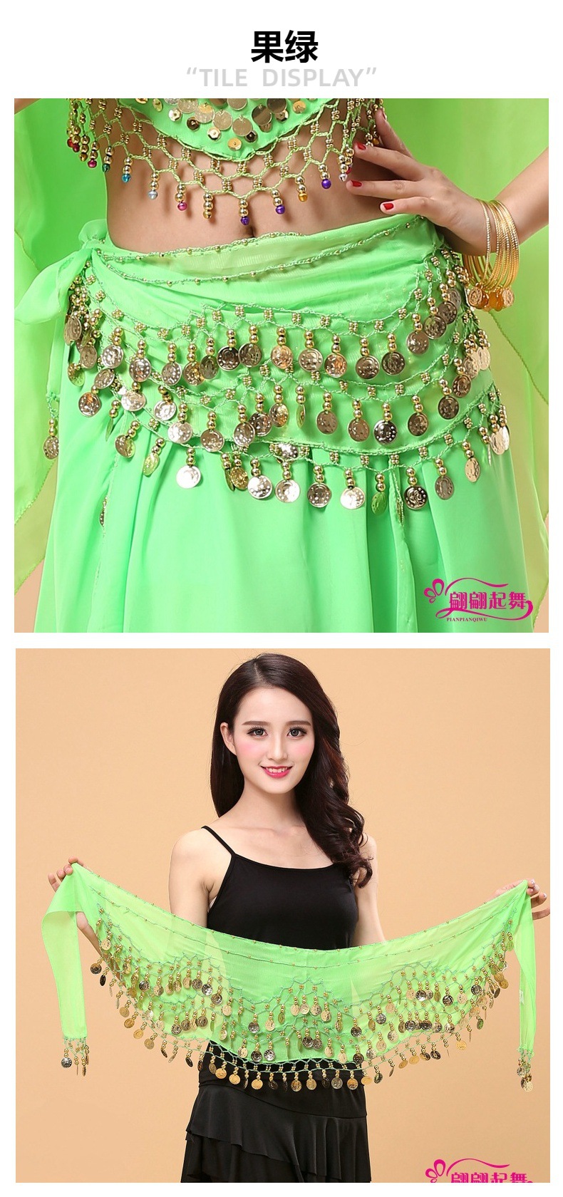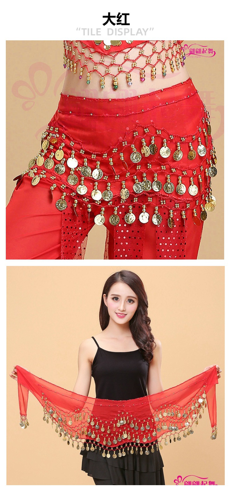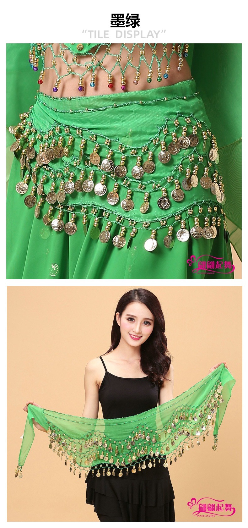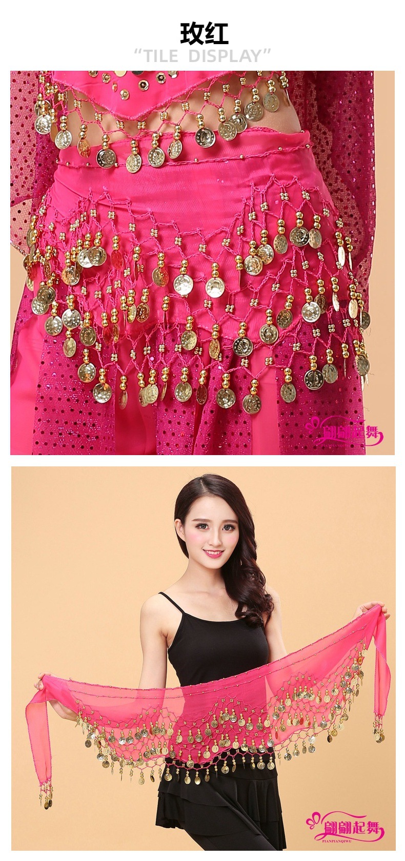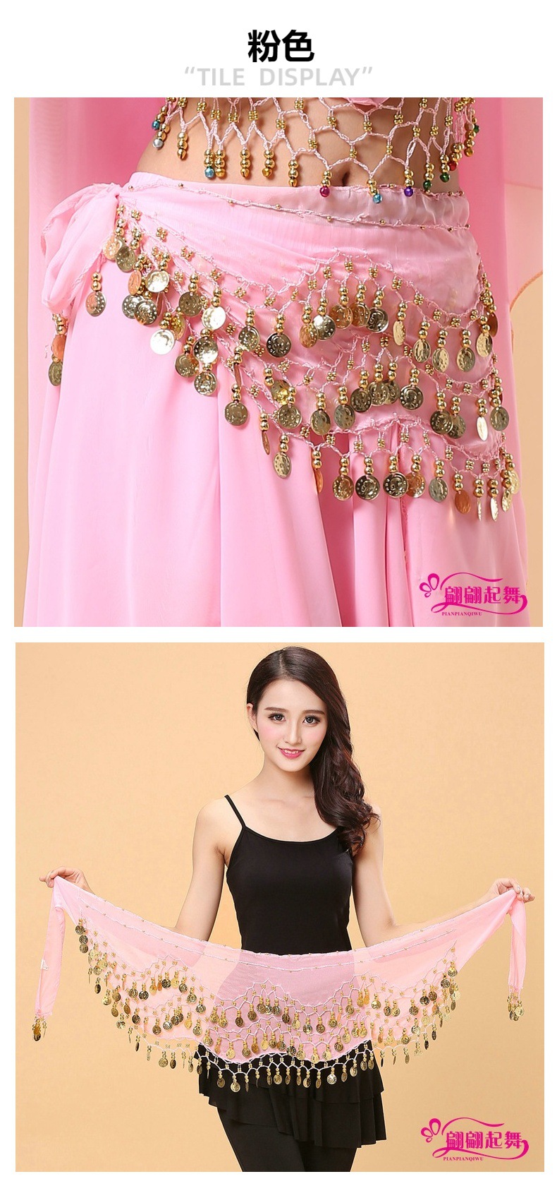 Новая танцевальная одежда для танца живота поясная цепочка пояс 128 монет шифон Йога Индийский танец Практика талии цепи аксессуары