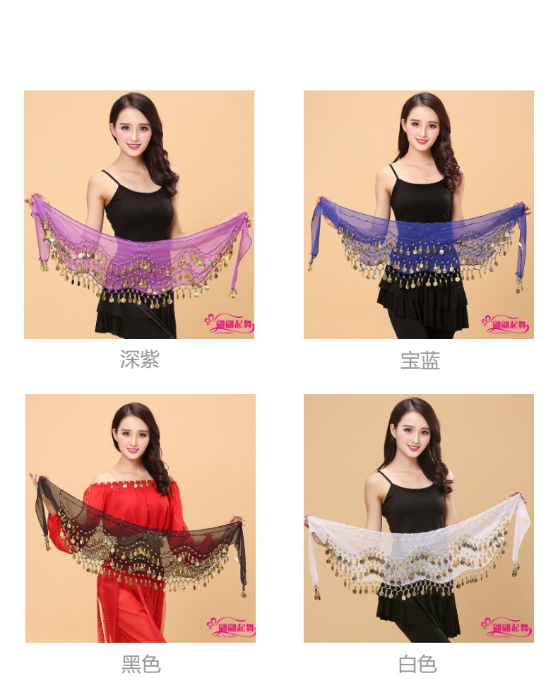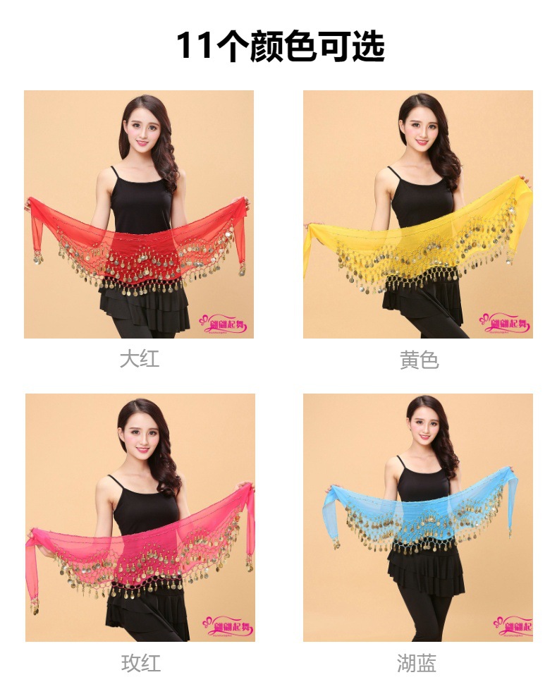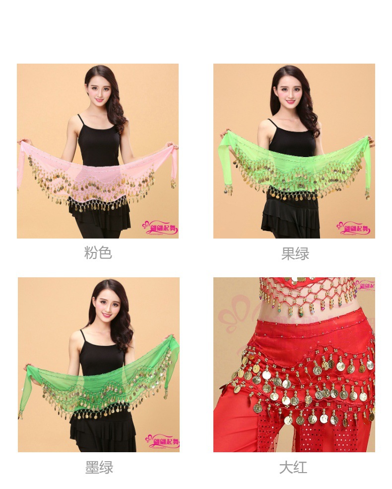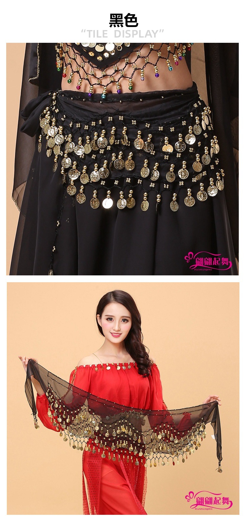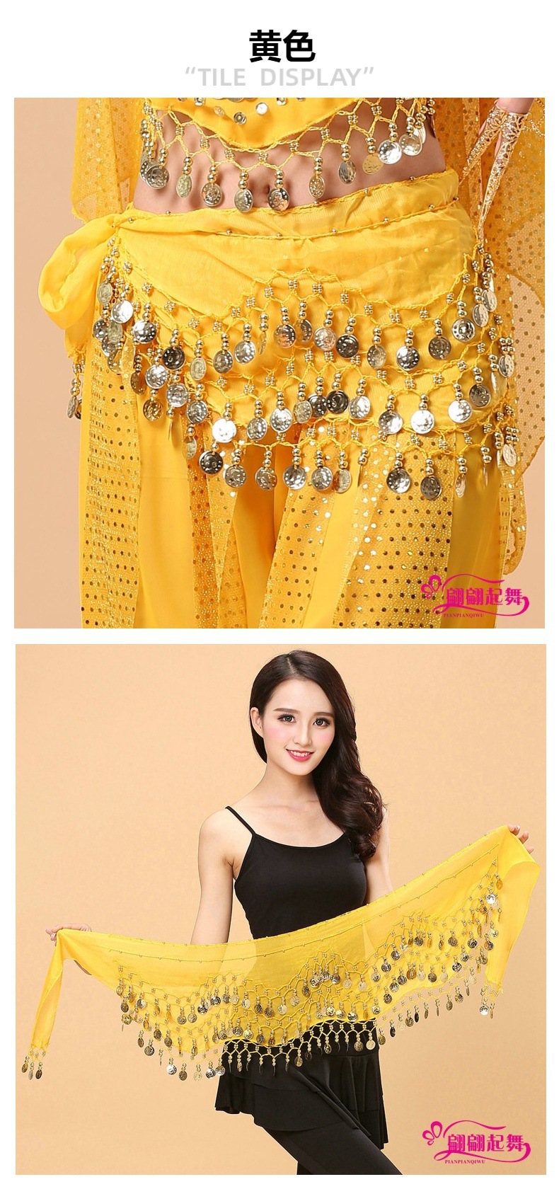 Новая танцевальная одежда для танца живота поясная цепочка пояс 128 монет шифон Йога Индийский танец Практика талии цепи аксессуары