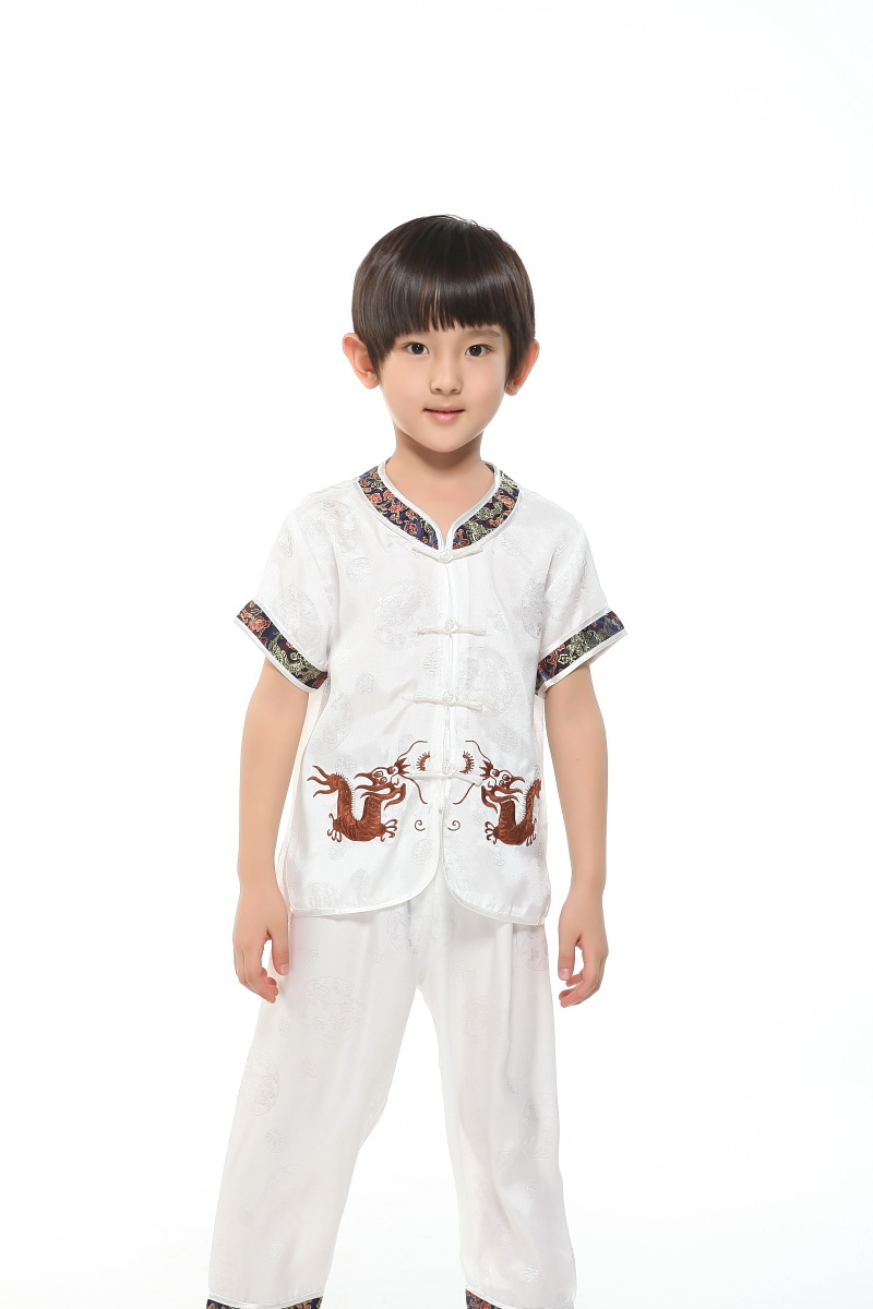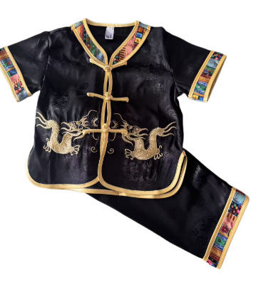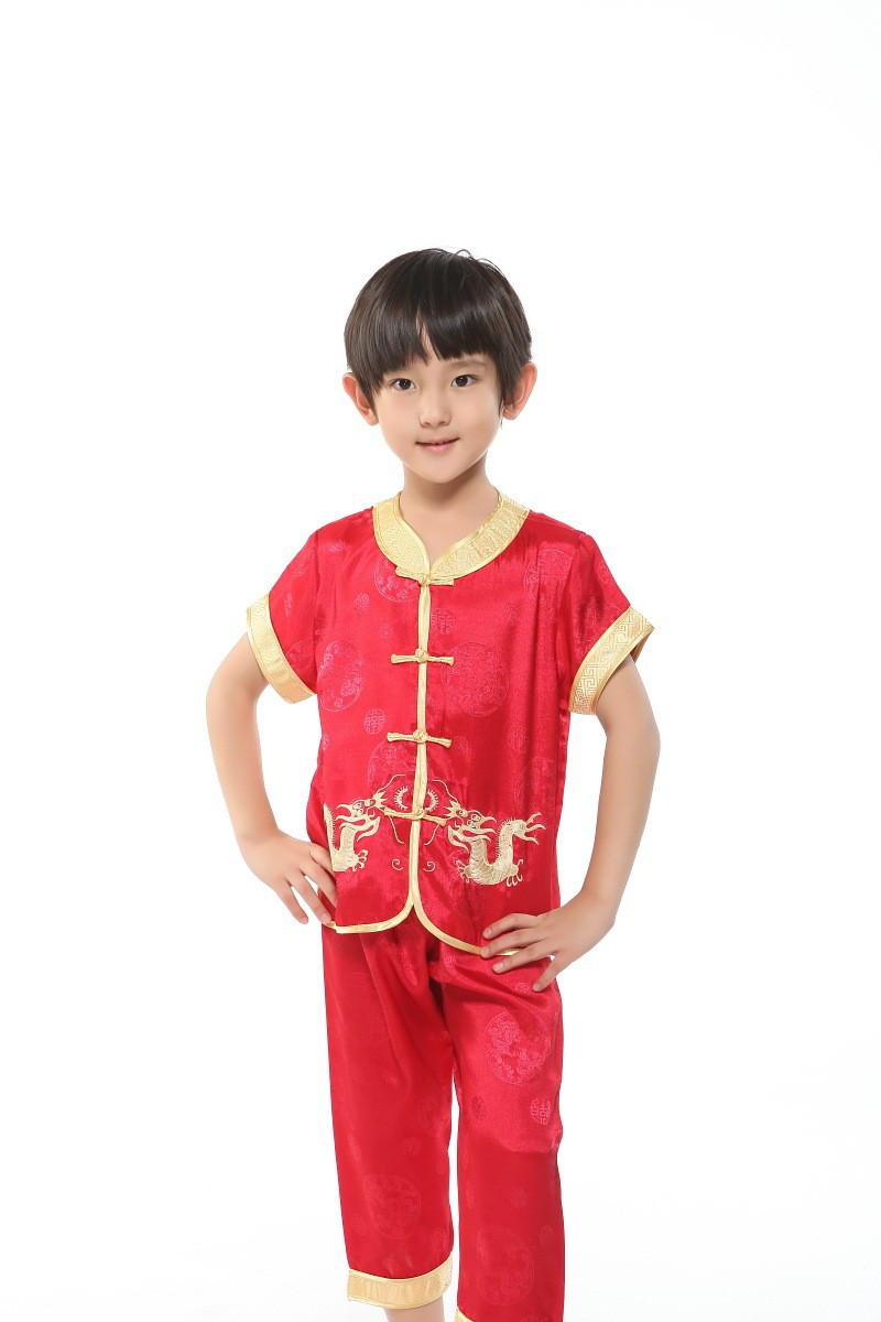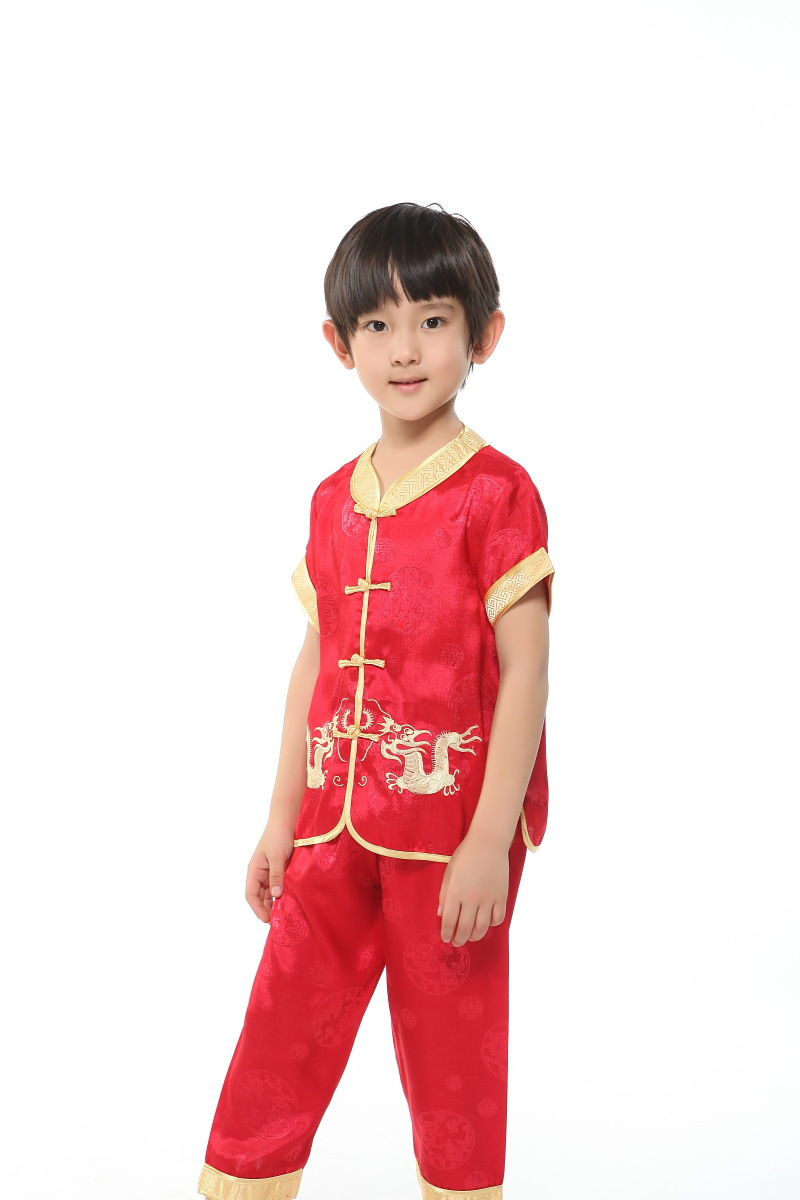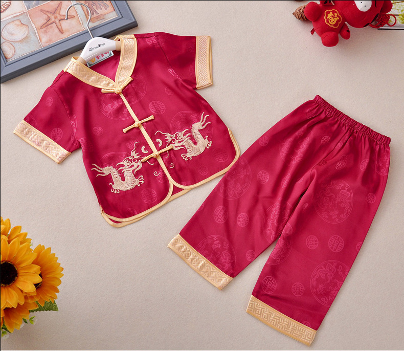 Красный специальный набор Little Ssangyong костюм Tang Summer костюм мальчик с короткими рукавами брюки костюм Tang Tang вышитый дракон костюм Tang