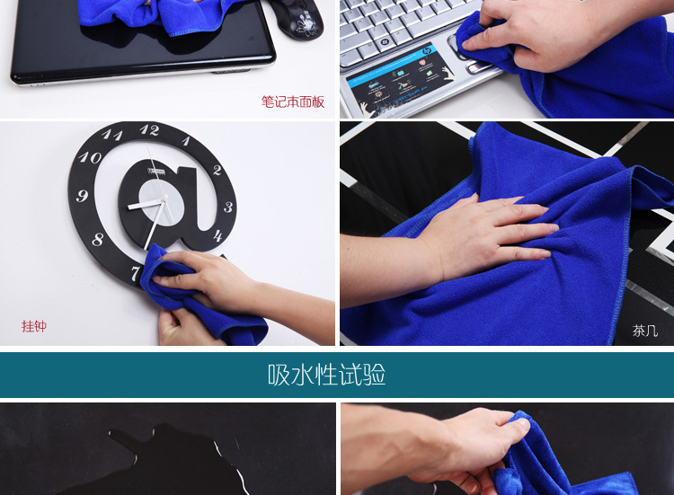 3.不脱毛: 高强的合纤长丝,不易断裂,同时采用精编织法,不抽丝,不脱圈,纤维也不易从毛巾表面脱落。用它作成擦洁巾,擦车巾特别适合擦拭光亮油漆表面,电镀表面,玻璃,仪表及液晶屏等,在汽车贴膜过程中对玻璃做清洁处理,可达到非常理想的贴膜效果。