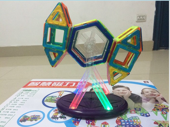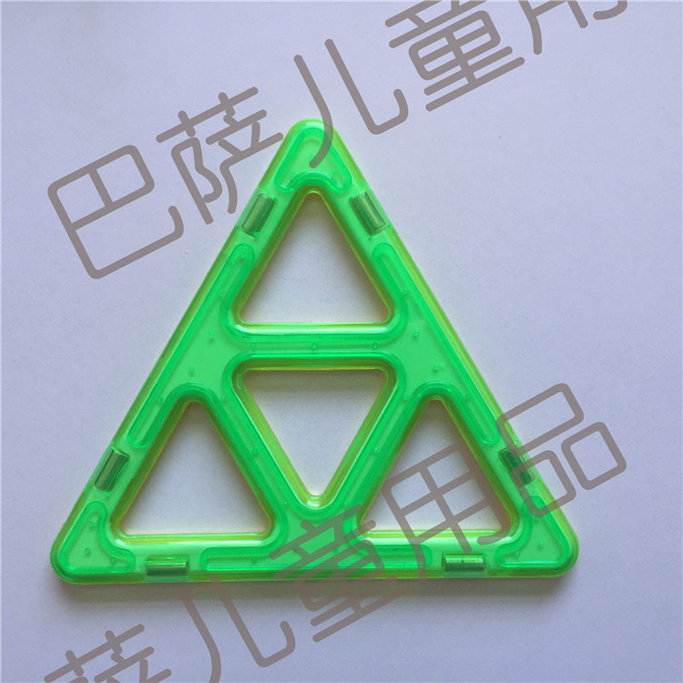 磁力片产品由ABS塑胶、超强磁铁制造。可以360度旋转,相互嵌入,操作容易。可以轻松制作成球体、锥体、正方体以及由基本图形再转变成各种造型。可以让孩子自由发挥想象力和创造力。因此:对各大学校、幼儿园、教学中心而言,它也是一款不可多得的儿童教具。在游戏过程中,通过双手的探索,加上左右脑的思考,从而促进手指灵活,刺激大脑的发育。可以让孩子学习到数理观念及空间感,也能增进亲子间的互动和情感交流