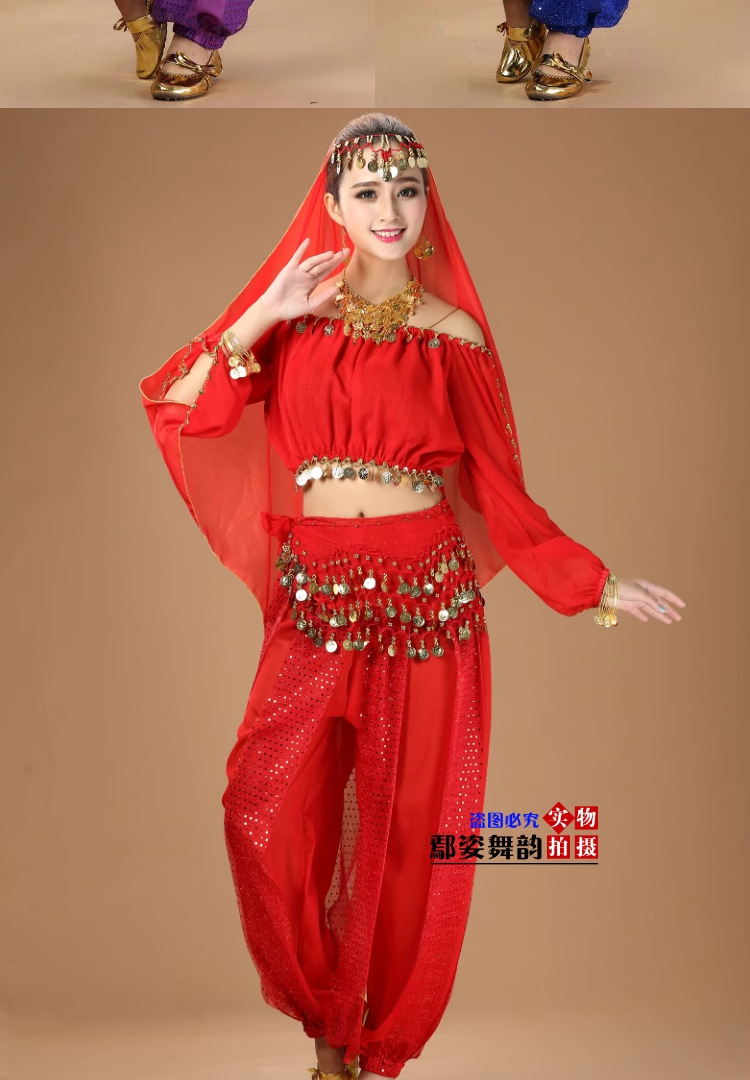 Костюм для танца живота Индийский танцевальный костюм Танцевальная одежда Костюм для танца живота Новый костюм с длинным рукавом с фонариком