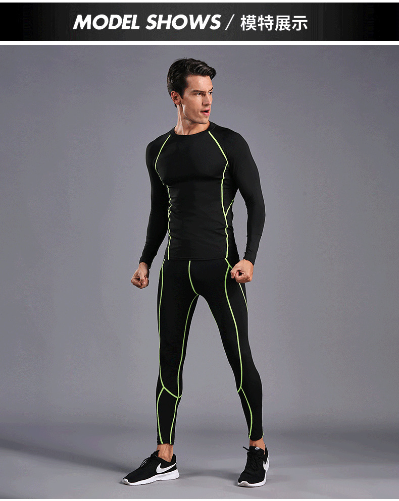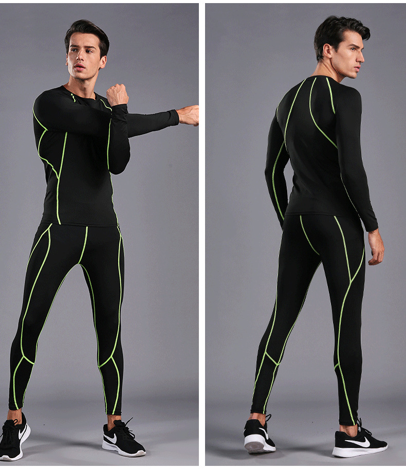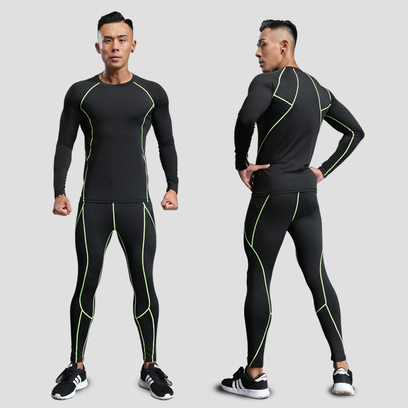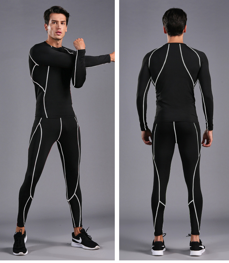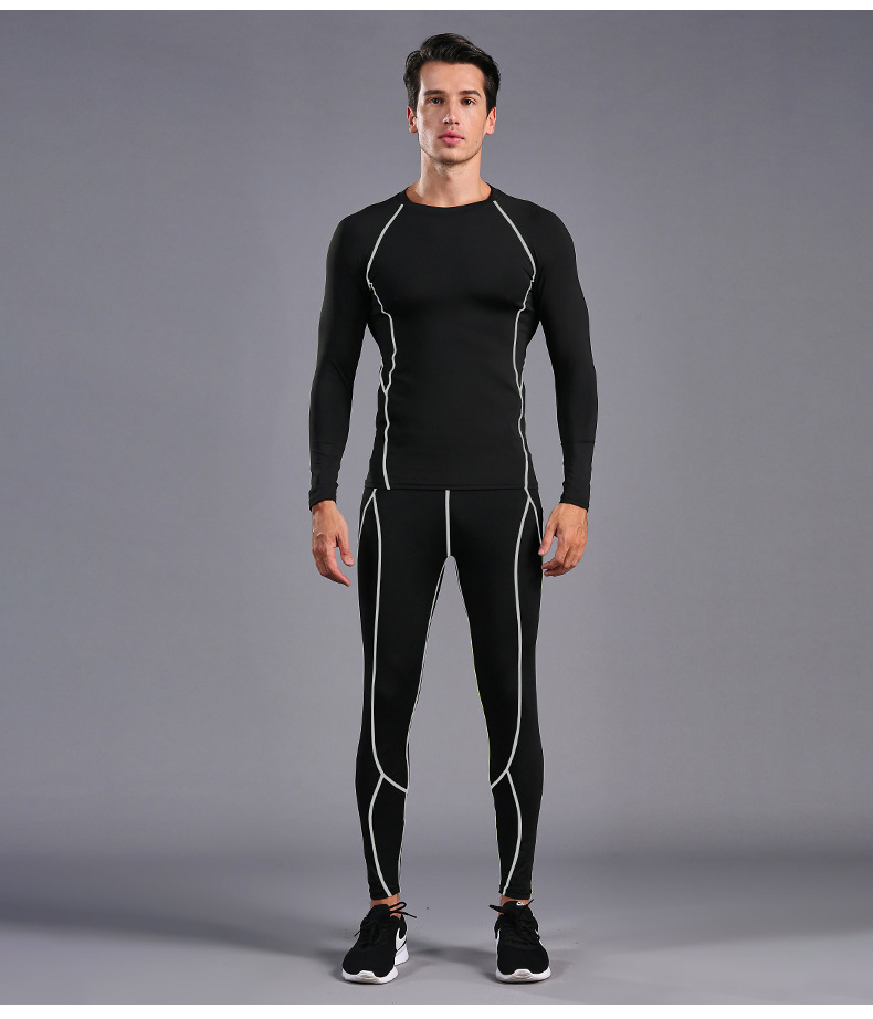 В наличии оптом Спортивный костюм для бега Мужские колготки для фитнеса быстросохнущая одежда с длинными рукавами и длинными брюками тренировочный костюм 0005