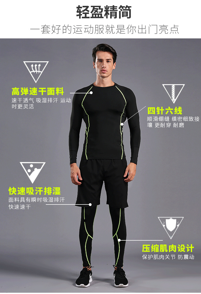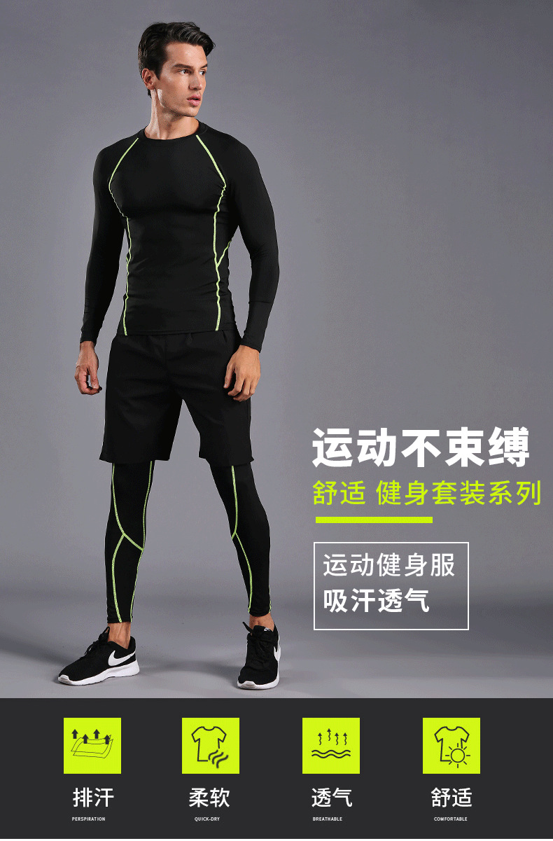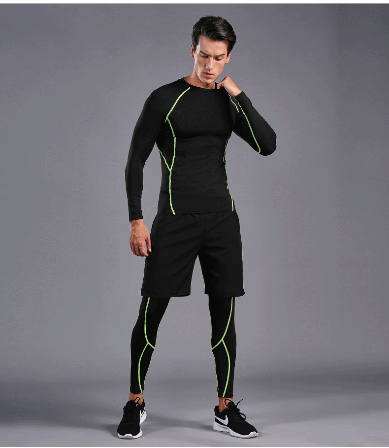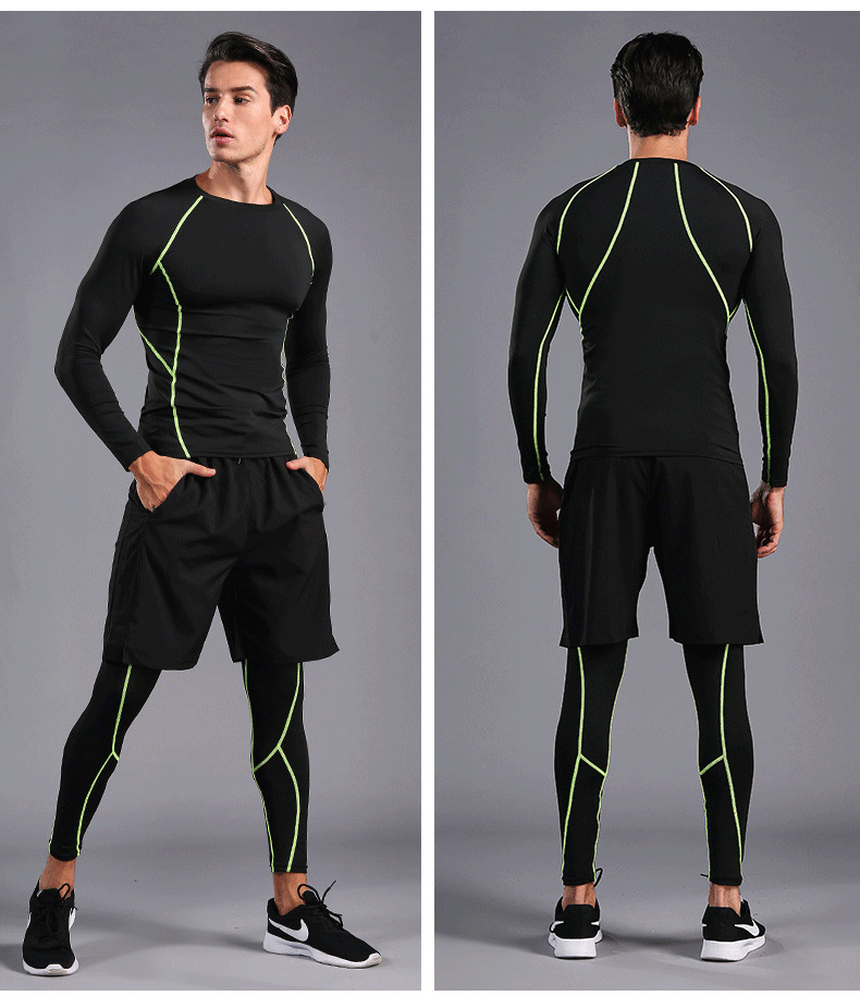 В наличии оптом Спортивный костюм для бега Мужские колготки для фитнеса быстросохнущая одежда с длинными рукавами и длинными брюками тренировочный костюм 0005