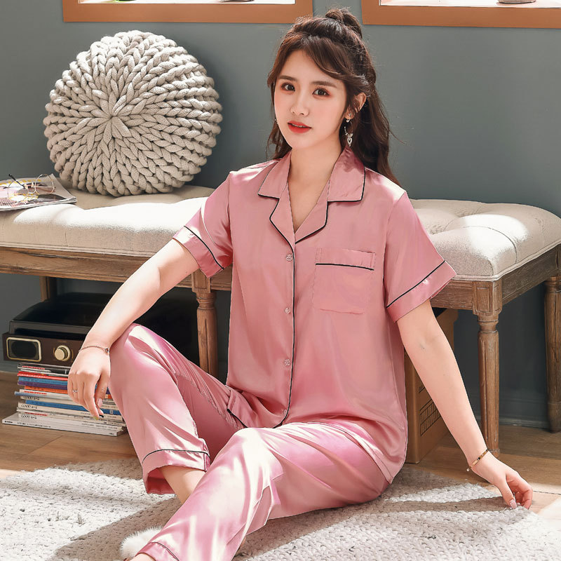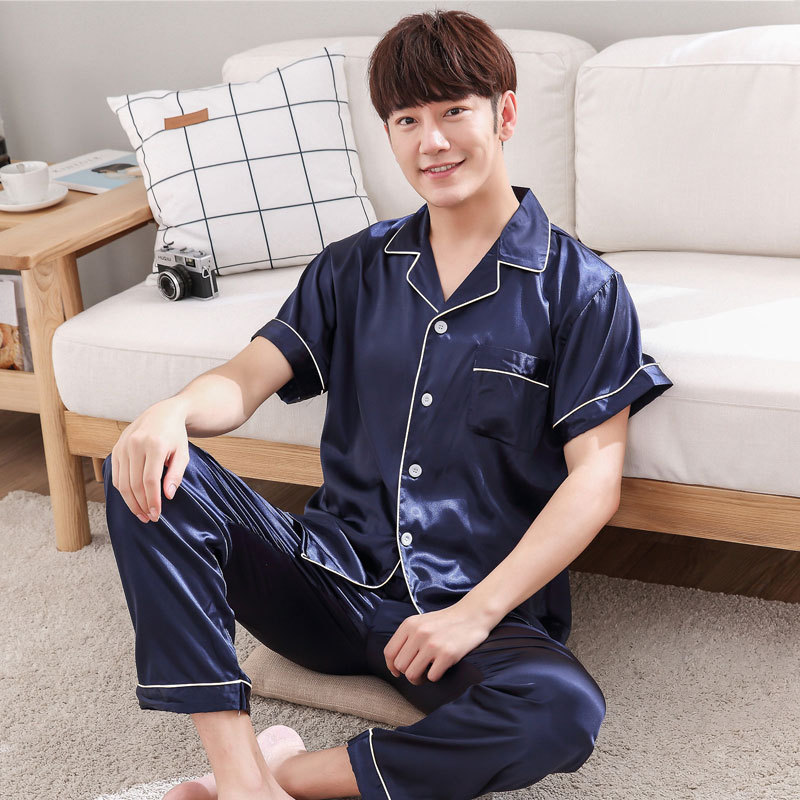 Новая весенне-летняя Осенняя Пижама для мужчин и женщин из искусственного шелка для пар, Свадебный Шелковый костюм с длинными рукавами и короткими рукавами, домашняя одежда