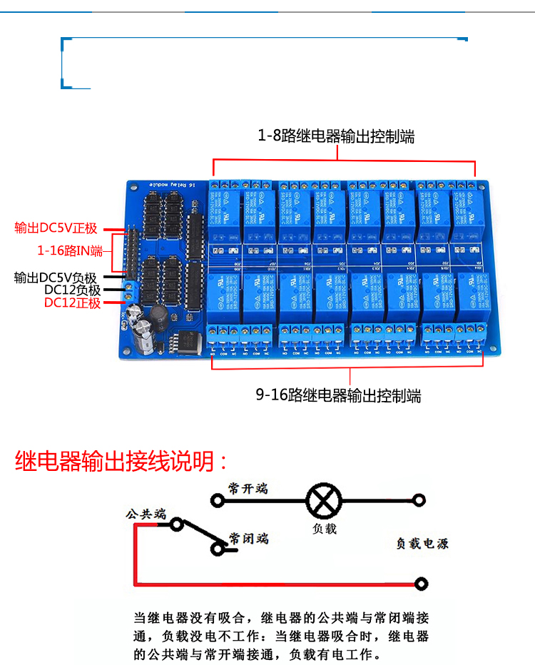 5 В * 16-полосное реле (синяя плата); Реле 12 В * 16-way (синяя плата); 24V * 16-стороннее реле (синяя плата)