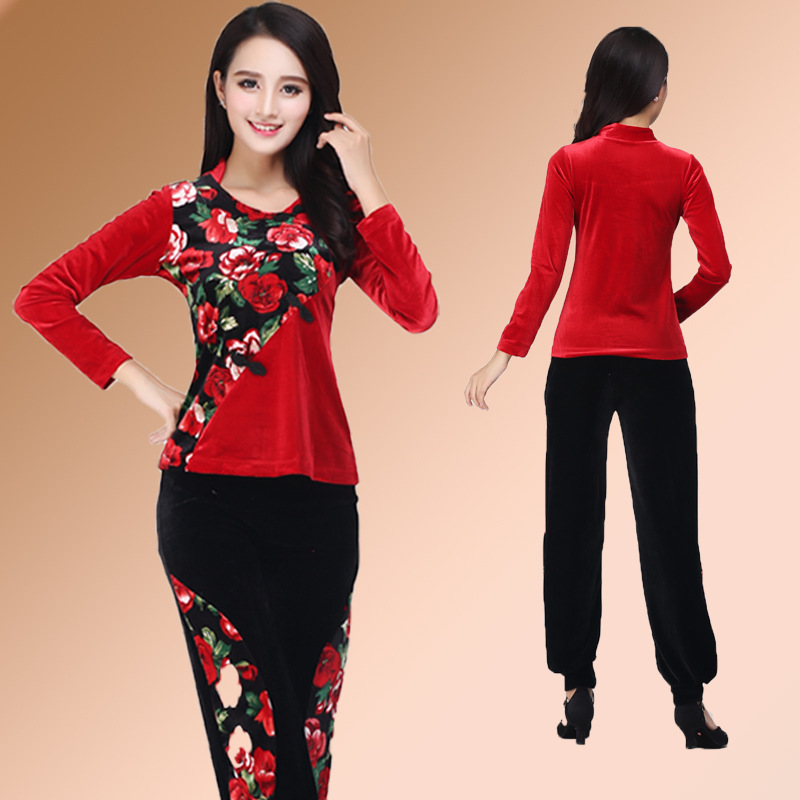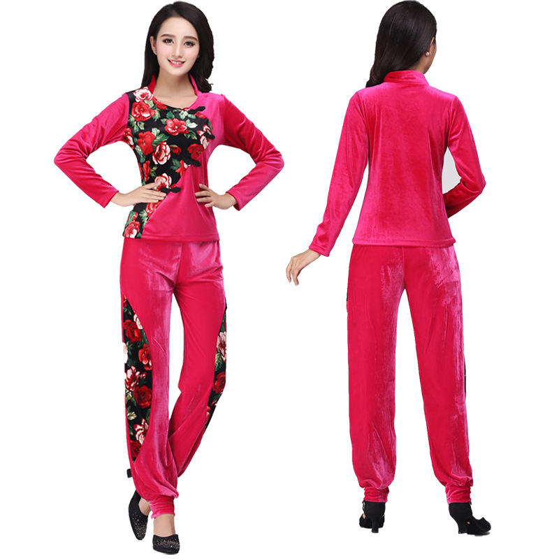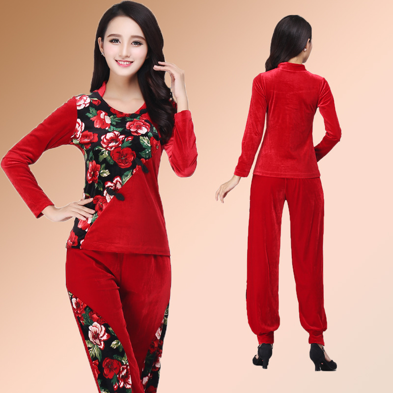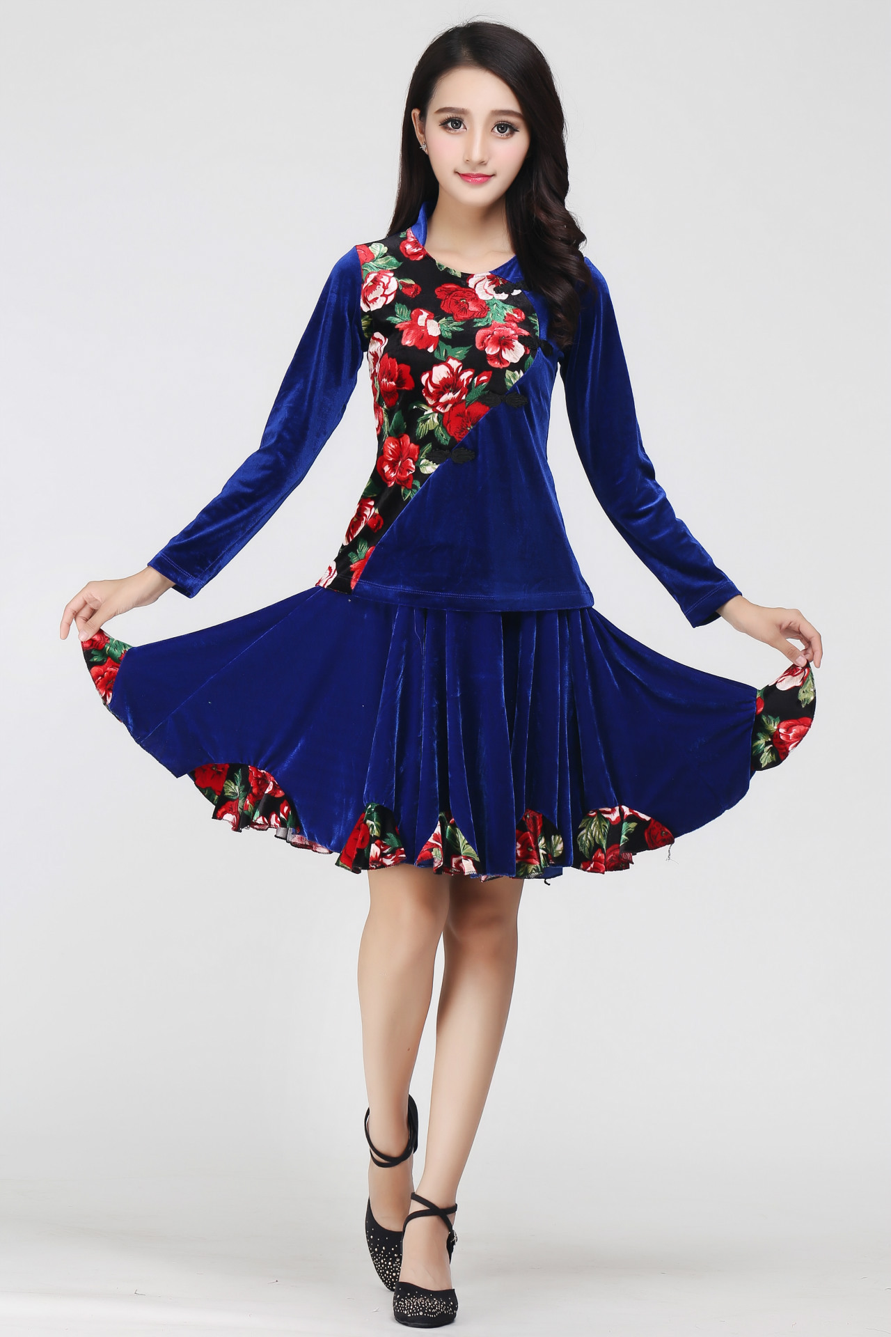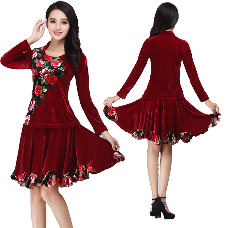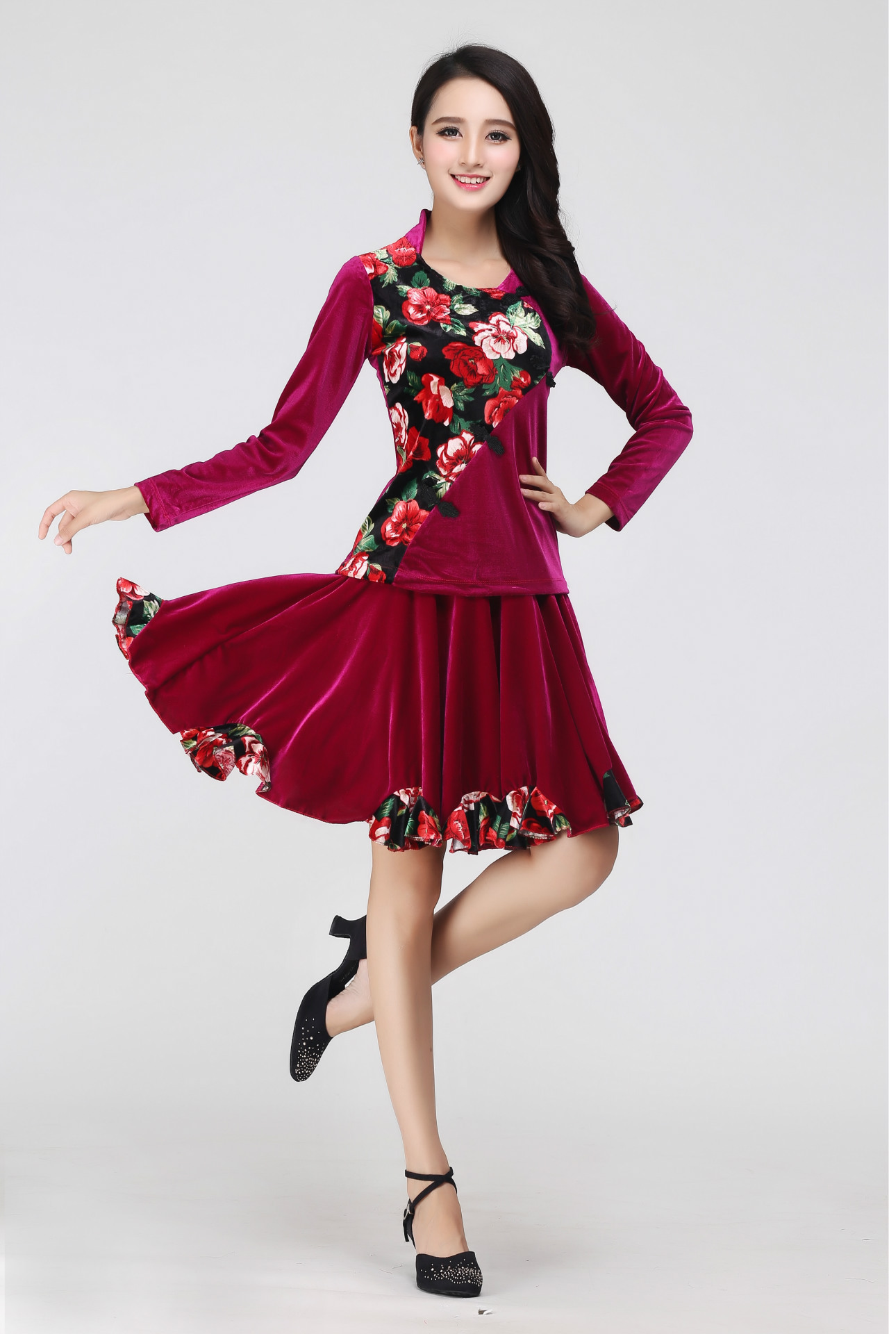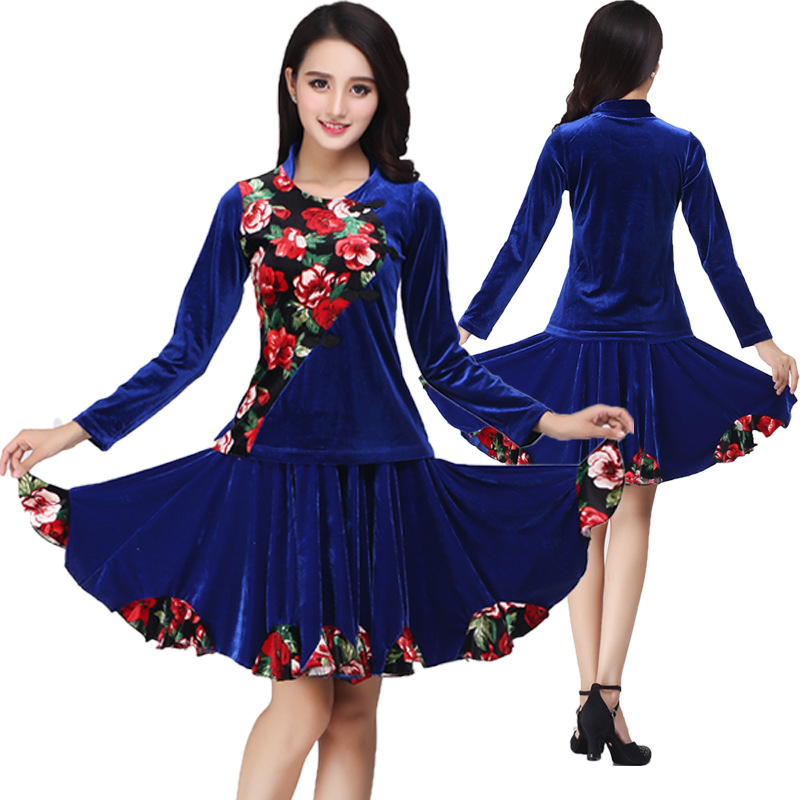 Квадратный танцевальный костюм Корейский бархат с длинными рукавами осенне-зимняя новая одежда приталенный тренировочный брючный костюм с юбкой для выступлений костюм