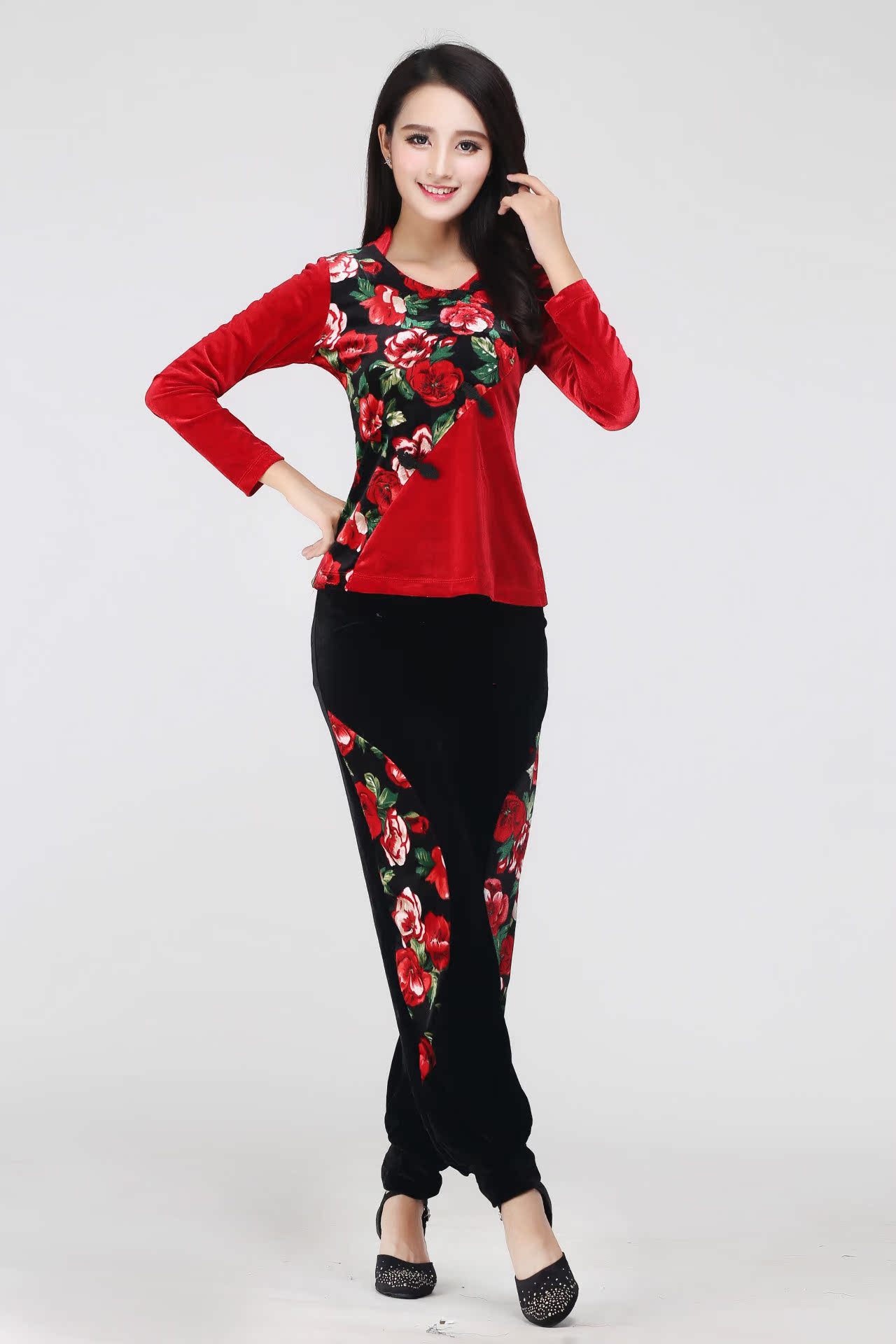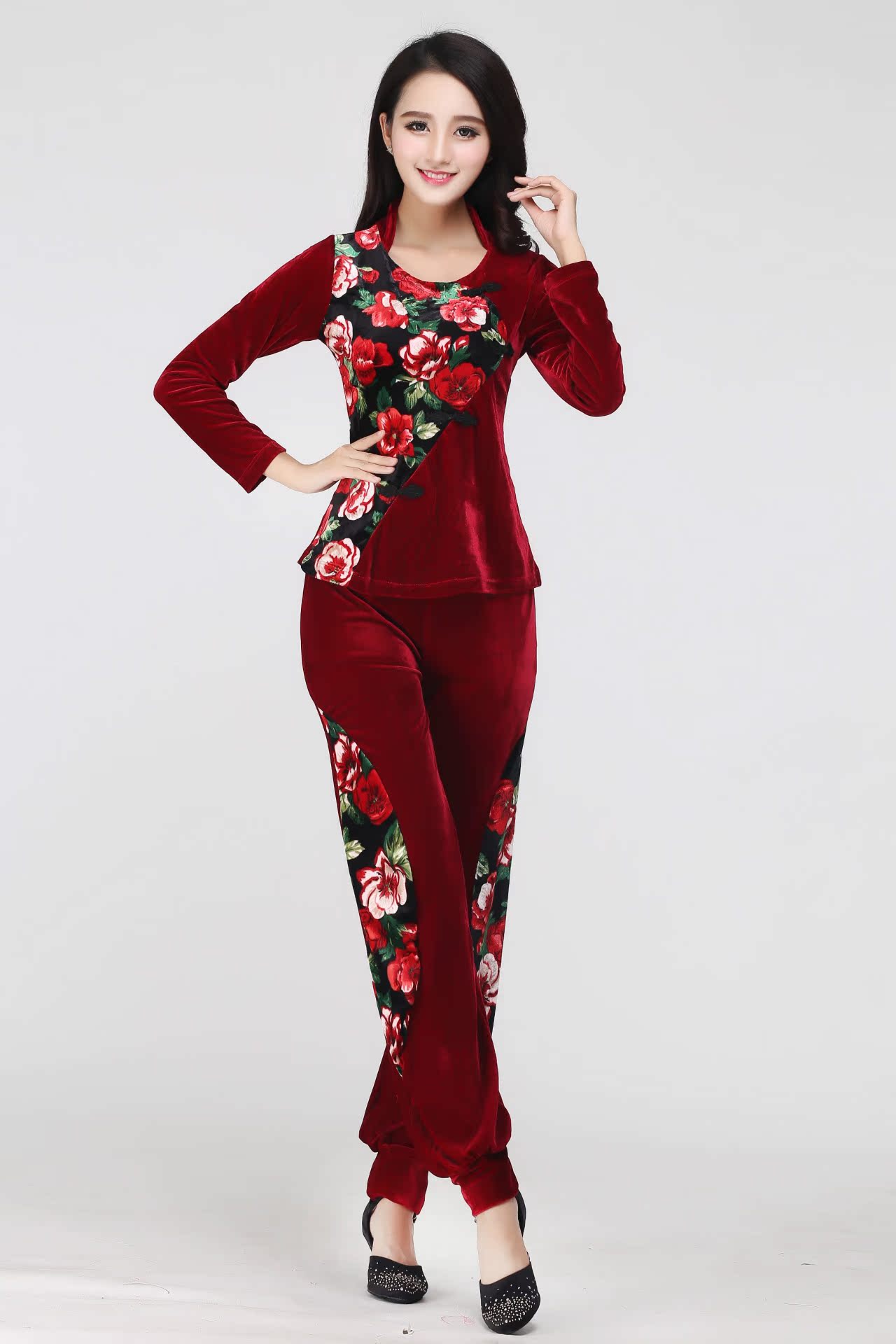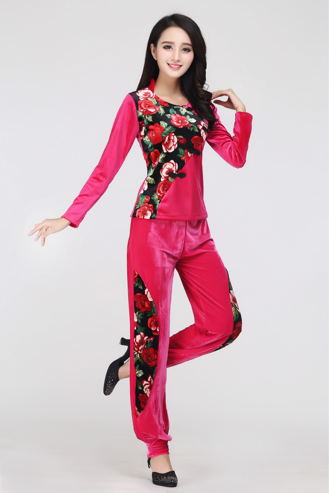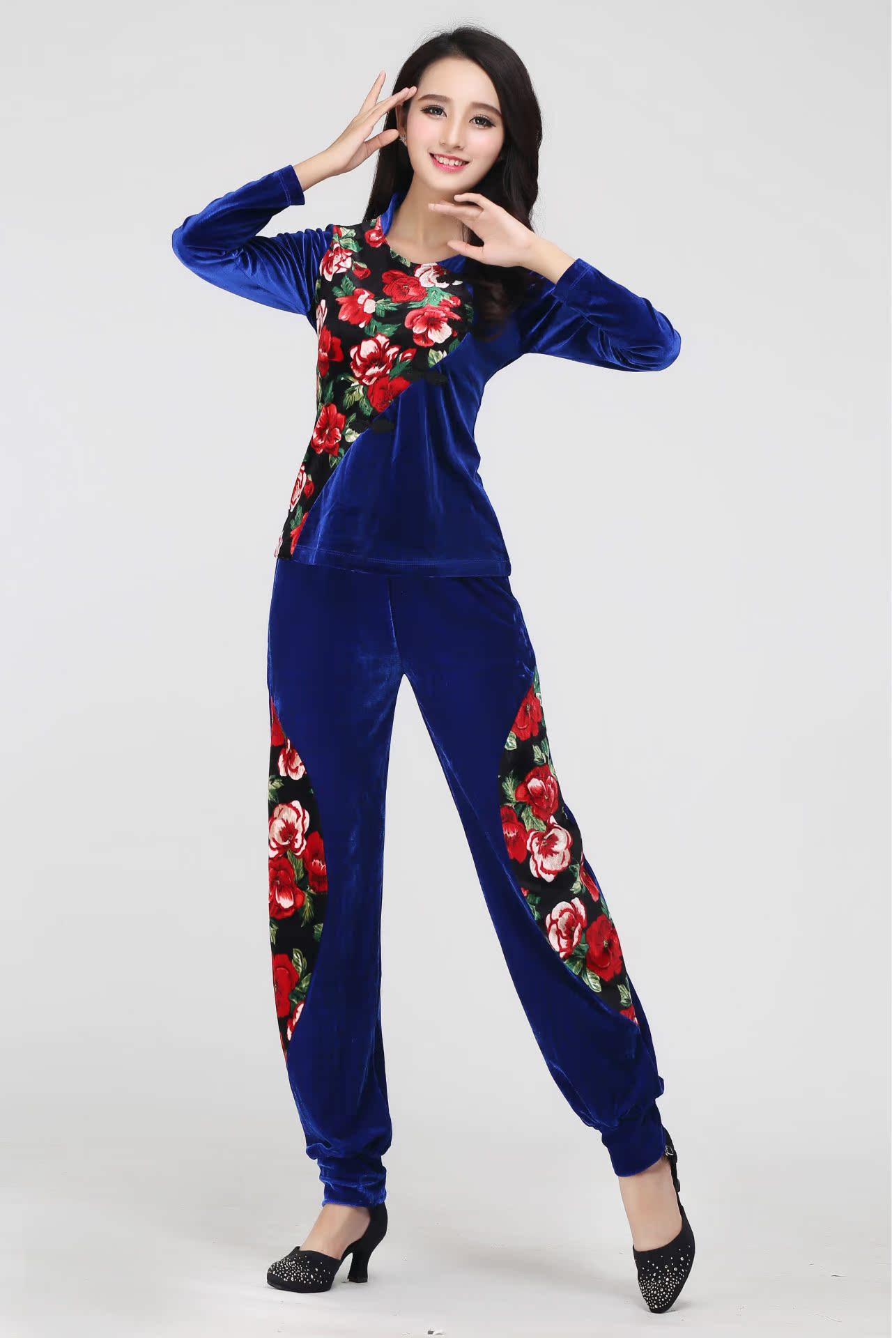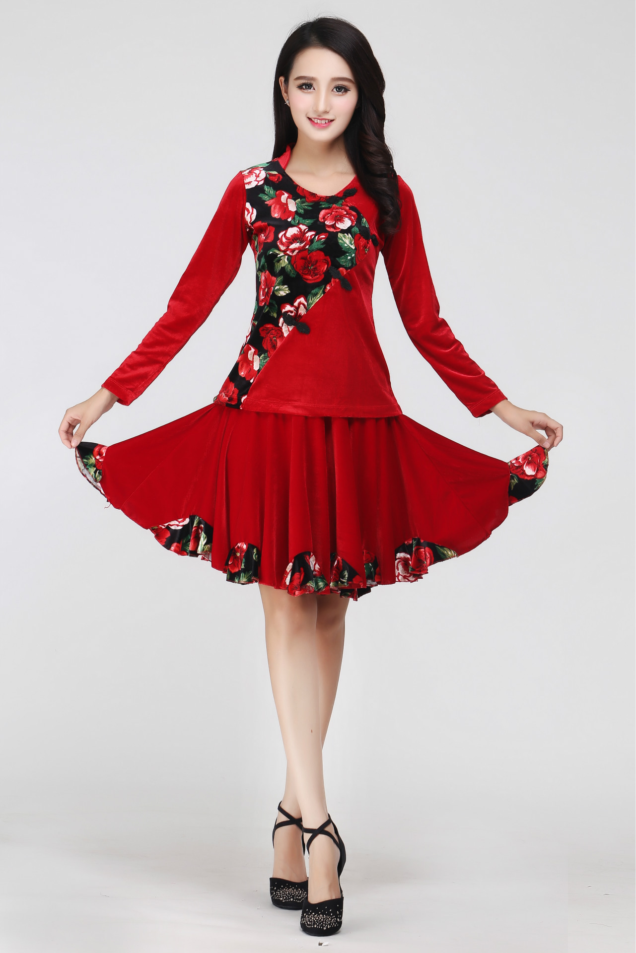 Квадратный танцевальный костюм Корейский бархат с длинными рукавами осенне-зимняя новая одежда приталенный тренировочный брючный костюм с юбкой для выступлений костюм
