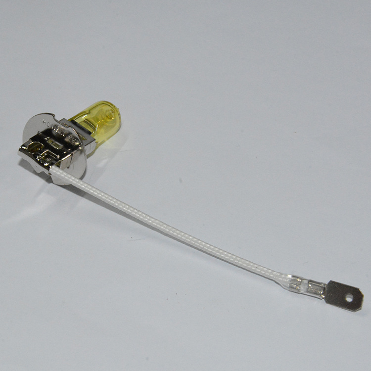 该灯泡型号为黄金光H3石英卤素灯泡,灯泡功率是100W,电压是12V,泡壳部分采用的是高品质的石英料,这种材料能够耐高温和高压,灯泡内充氙气以保证灯泡使用寿命,这种灯泡发出的光为金黄色,黄色光穿透力强,尤其在雨雾天气更能彰显这种特性。这种灯泡用于汽车防雾灯以及199小太阳灯,只要安装灯泡的车用电源是12V,灯座是H3的所有车型都可以安装该灯泡。