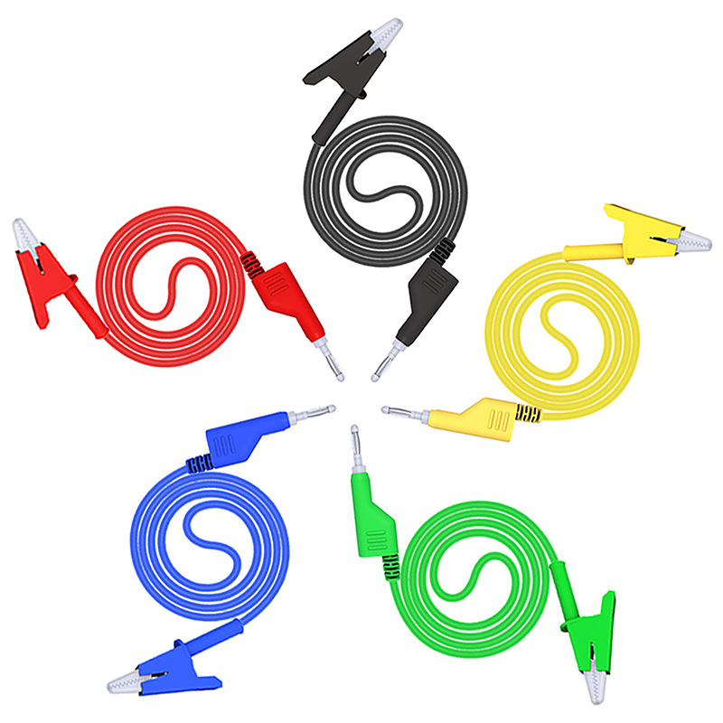5PCS 4mm stackable banana plug to crocodile alligator clip test leads. 5 colors make it easy to distinguish them during use.