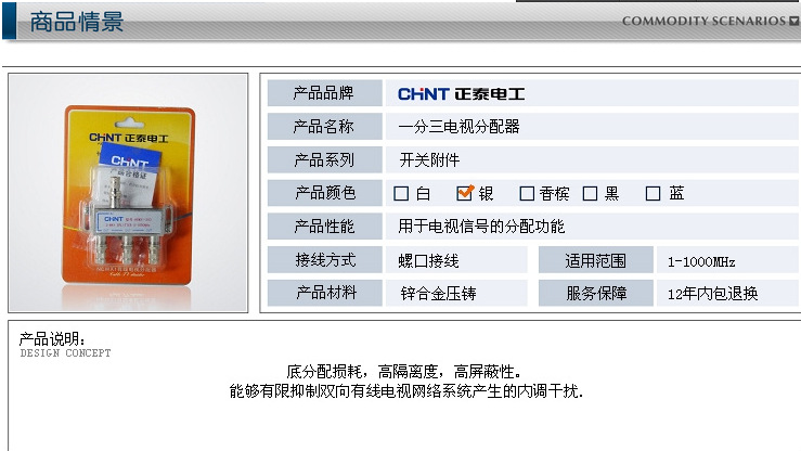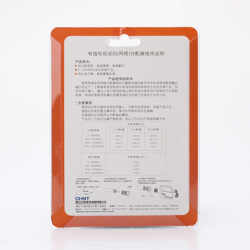正泰电视分配器 一份3分配器 NEWX1-203 有线电视双向(网络)
