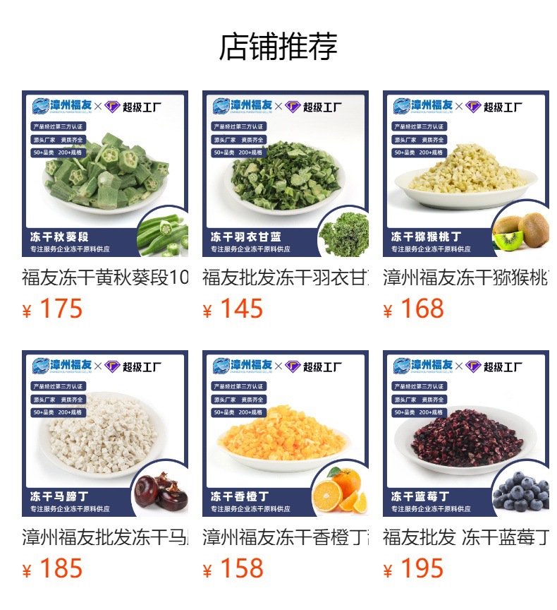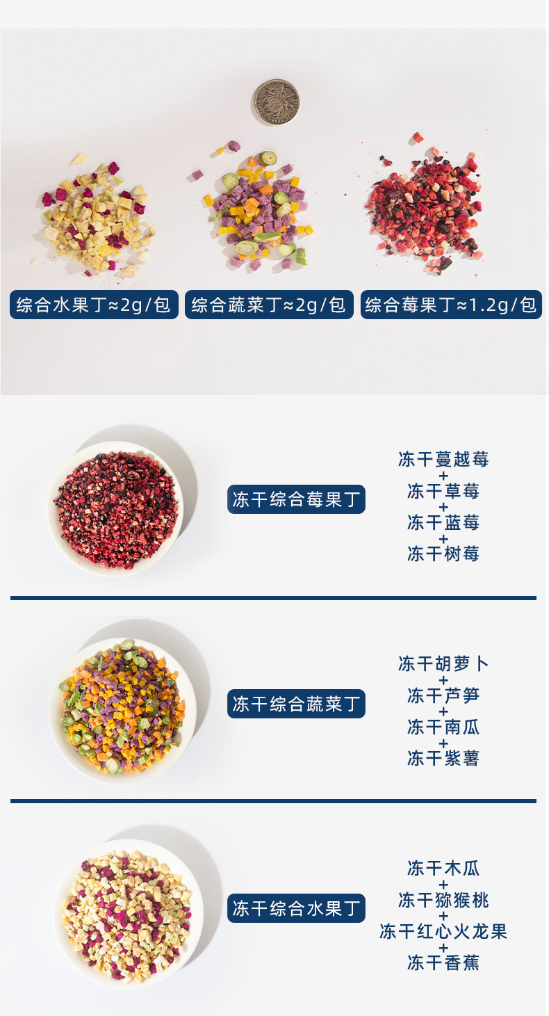 [Новый продукт] Либлизированные фрукты Санта-Клауса (1/2 разреза) [20 г/упаковка]; [Новый продукт] Ломтики лохматого пера сублимированного (8-10 мм) [20 г/упак.]; [Новый продукт] Лидированные банановые полоски (1/2 среза) [20 г/упак.]; Ледяные кубики горькой дыни (5*5 мм) [20 г/упаковка]; Капсулированная споровая капуста (1/2 шт.) [20г/уп.]; Лигнута сублимированная (10 мм) [20 г/упак.] [Рекомендация по новому продукту]; Капсулированная споровая капуста (цельная) [20г/уп.]; Фризиллированный сибиручий сибурик (6*6мм) [20г/уп]; Литейные инжир (резка 1/4) [20г/уп]; Литейные инжир в кубиках (5*5 мм) [20 г/уп.]; Ледяная смесь ягод (клубника, малина, черника, клюква) [1,2 г*20 пакетиков/пакет]; Литейные смешанные овощи кубиками (фиолетовый сладкий картофель, морковь, тыква, спаржа) [2 г*20 пакетиков/пакет]; Фризиллированная фасоль (3-10мм) [20г/уп]; Зеленая капуста сублимированная (3-12мм) [20г/уп]; Брокколи сублимированная (20-25мм) [20г/уп.]; Сегменты стручковой горошины сублимационной сушки (сегменты 10 мм) [20 г/упак.]; Зеленый горошек сублимированный (цельный) [20г/уп.]; Фризильдried кусочки дуриана (8-25 мм) [20 г/упак.]; Литейные яблоки кубиками (5*5 мм) [20 г/уп.]; Леденящий фрикадельки из фрикаделек из фрикаделек (5*5 мм) [20 г/уп.]; Литейные кубики тыквы (5*5 мм) [20 г/уп.]; Литейные ананасы кубиками (5*5 мм) [20 г/уп.]; Литиризированные кубики персика (5*5 мм) [20 г/уп.]; Ледяная клубника кубиками (5*5мм) [20г/уп.]; Лофированное манго кубиками (5*5 мм) [20 г/уп.]; Литые банановые кубики (6*6 мм) [20 г/уп.]; Ледяные кубики красного драконьего фрукта (6*6 мм) [20 г/упак.]; Литейные кубики киви (5*5 мм) [20 г/уп.]; Лофированная малина кубиками (2-6мм) [20г/уп]; Лидированный картофель в кубиках (6*6 мм) [20 г/уп.]; Лидированный картофель фрикадельки (8*8мм) [20г/уп]; Литейные кубики черники (2-5 мм) [20 г/уп.]; Минced шпинат сублимированный (срез 2-7мм) [20г/уп]; Лидированный кубиками груша Сидней (5*5 мм) [20 г/уп.]; Лукинья сиднейская сублимированная кубиками (10*10мм) [20г/уп]; Литиризированные апельсиновые кубики (5*5 мм) [20 г/уп.]; Литые апельсины/кусочки апельсина (менее 3 мм) [20 г/упак.]; Литейная сушеная спаржа кубиками (сегменты по 5 мм) [20 г/уп.]; Литейная клюква кубиками (2-6мм) [20г/уп.]; Литейные кубики таро (5*5 мм) [20 г/уп.]; Литые кокосовые кубики (5*5 мм) [20 г/уп.]; Литейные каштаны сублимированного производства (6*6мм) [20г/уп]; Литейные кубики замороженной ямы (5*5 мм) [20 г/упак.]; Литейные грибы шиитаке кубиками (5*5 мм) [20 г/уп.]; Ломтики фризиллярии (8-10 мм) [20 г/уп.]; Ледяная клубника (30-35мм) [20г/уп.]; Ломтики банана сублимированного (5-7 мм) [20 г/уп.]; Ломтики красной питайи сублимированной (8-10мм) [20г/уп.]; Ломтики яблок сублимированного фасоли (5-7 мм) [20 г/уп.]; Ломтики сублимированной папайи (5-7 мм) [20 г/упак.]; Ледяные фишки из фиолетового сладкого картофеля [20 г/упаковка]; Ломтики киви сублимированного (5-7 мм) [20 г/уп.]; Ледяные инжир (1/2 шт.) [20г/уп.]; Ледяная черника (цельные плоды) [20г/уп.]; Ледяная клюква (цельные плоды) [20г/уп.]; Ледяная шелковица (цельные плоды) [20г/уп.]; Лохматая черника (цельные плоды) [20г/уп.]; Ледяная малина (цельные плоды) [20г/уп.]; Зерна кукурузы сублимационного производства (цельные зерна) [20г/уп.]; Ледяная бамия (целая) [20г/уп.]; Ломтики леденцов (5-7мм) [20г/уп]; Ломтики вишни сублимированной (5-7мм) [20г/уп.]; Ломтики фризиллярии сиднейской груши (8–10 мм) [20 г/уп.]; Ломтики лоquat сублимированного (6-8мм) [20г/уп.]; Литейные кубики тофу (8*8*6 мм) [20 г/уп.]; Литейные кокосовые кубики (3*3 мм) [20 г/уп.]; Кубики личи сублимированных (8*8мм) [20г/уп]; Ледяные дыни 