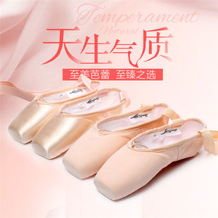 Балетные туфли для девочек пуанты с лентами атласные танцевальные туфли плоские туфли