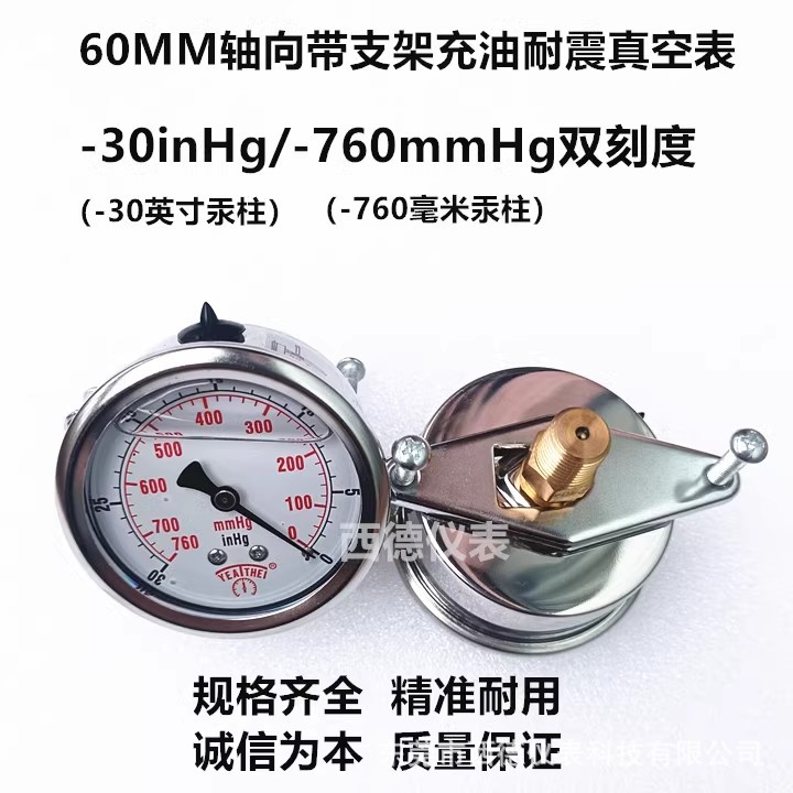 60 мм осевая кромка -30 дюймов рт. ст./-760 мм рт. ст., маслонаполненный и ударопрочный вакуумный манометр отрицательного давления, вакуумметр