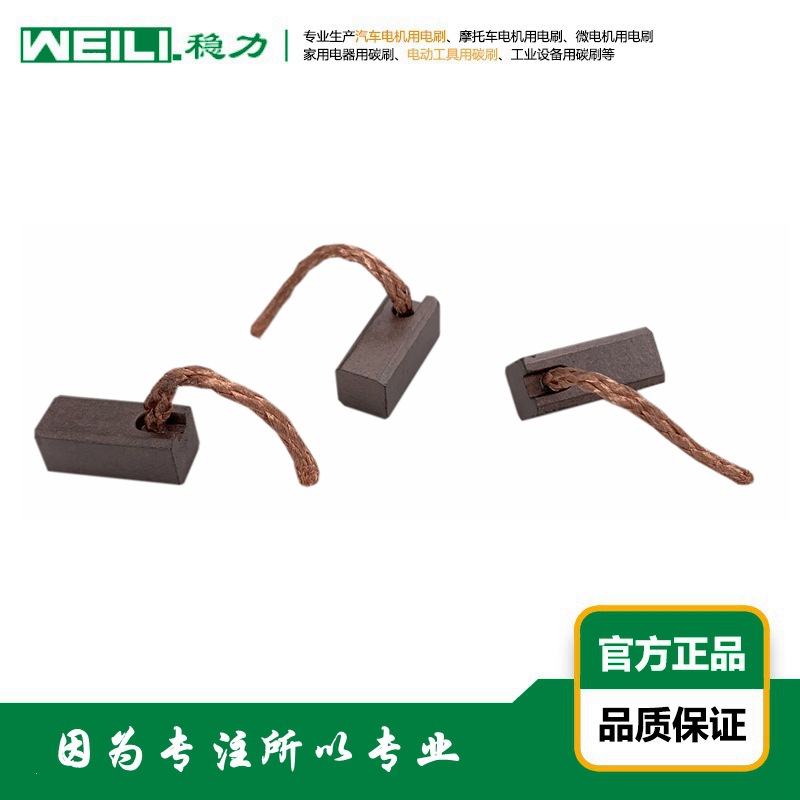 稳力碳制品是一家集研发、生产、销售和服务于一体的专业碳制品厂家。主要产品有:汽摩配电机用碳刷、微电机用碳刷、汽轮/水轮发电机用碳刷、起重/电动机用碳刷、铁路机车牵引电机用碳刷、工业智能机械设备用碳刷等。产品广泛应用到电力、冶金、化学、煤炭、轻纺、食品、运输交通、航空等行业。