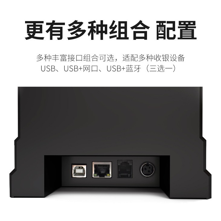 打印质量高,成本低,低噪声、高速度打印,支持钱箱驱动语言:支持多国语言