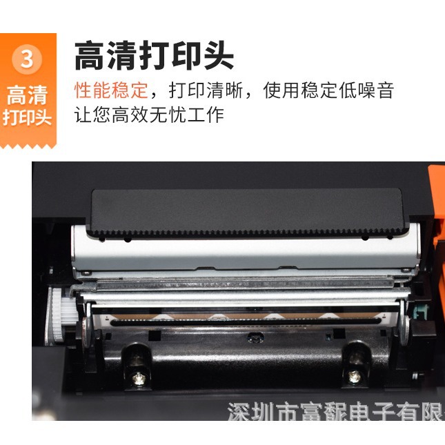 支持来单声光提示和自动获取IP功能,具备打印头温控保护及切刀防卡技术