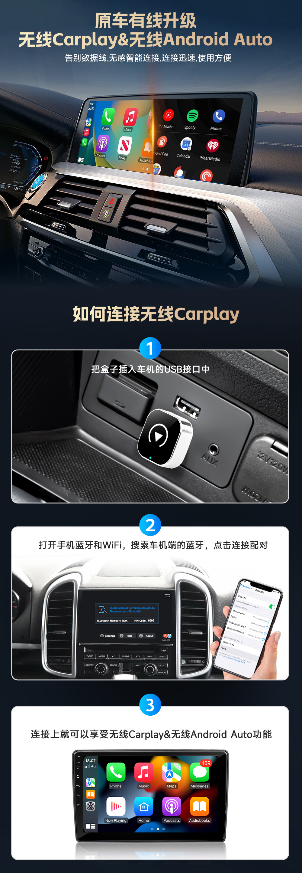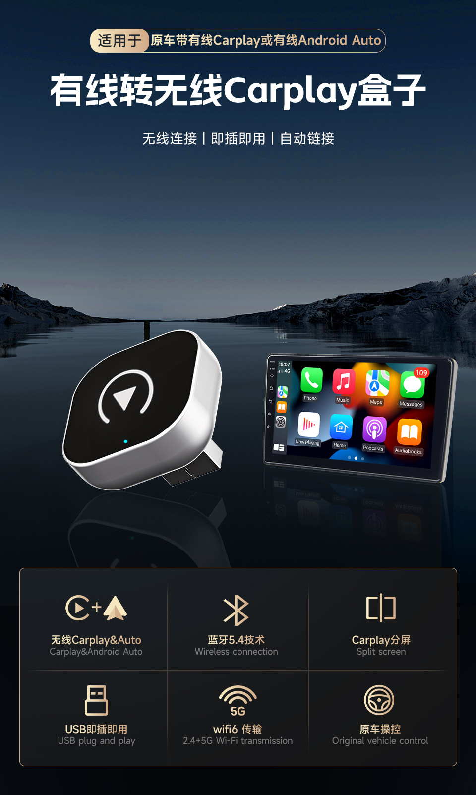 无线carplay盒子,carplay盒子,无线carplay适配器,carplay转安卓,carplay转安卓盒子,carplay盒,
