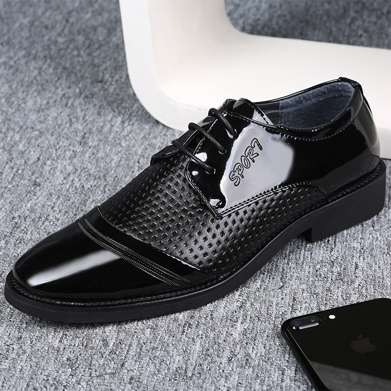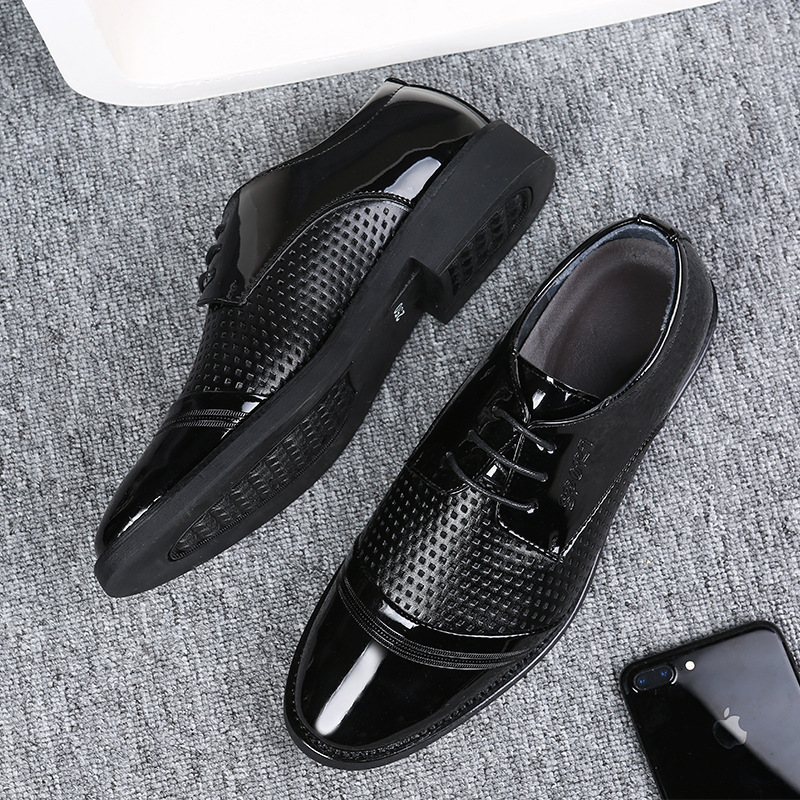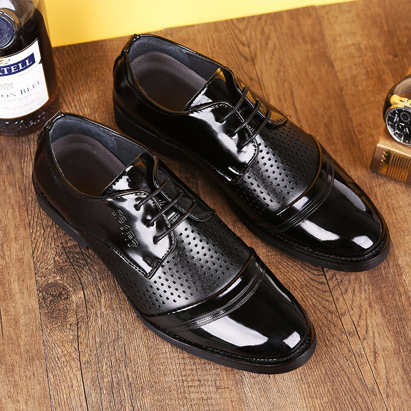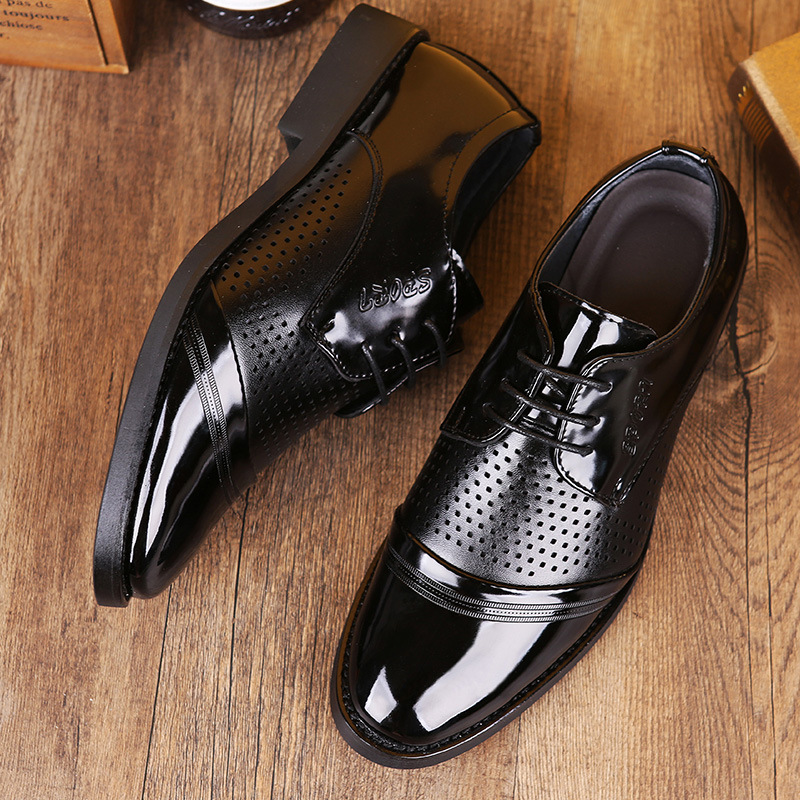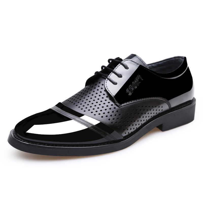 Летняя деловая обувь из полой кожи, мужская обувь, британская повседневная обувь, дышащая обувь с острым носком, формальная одежда, мужская штамповка на шнуровке