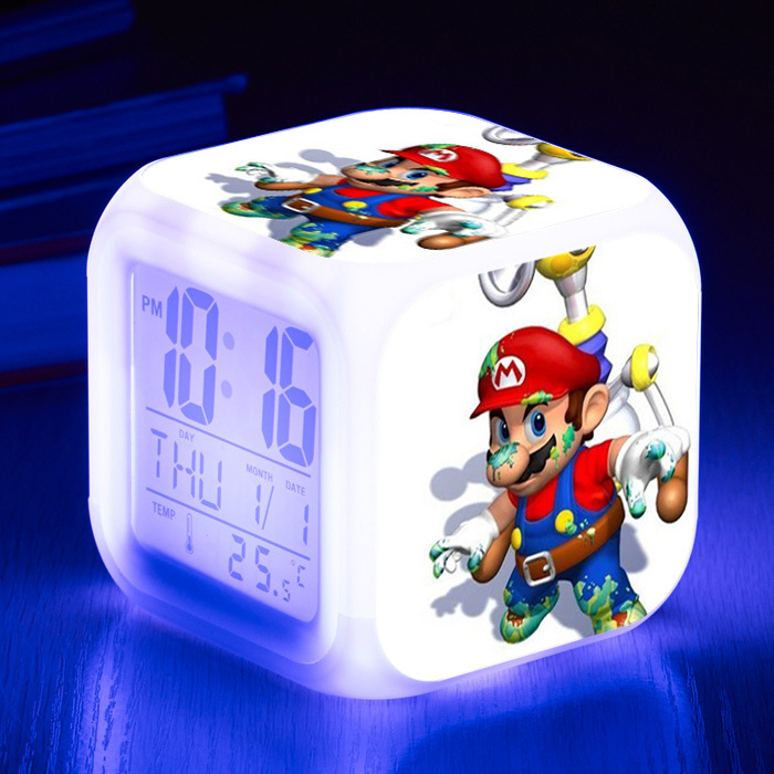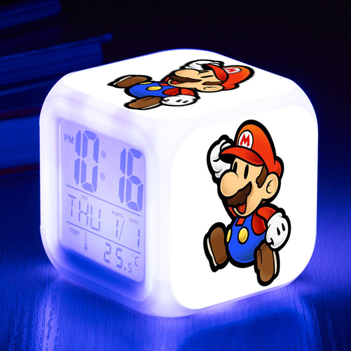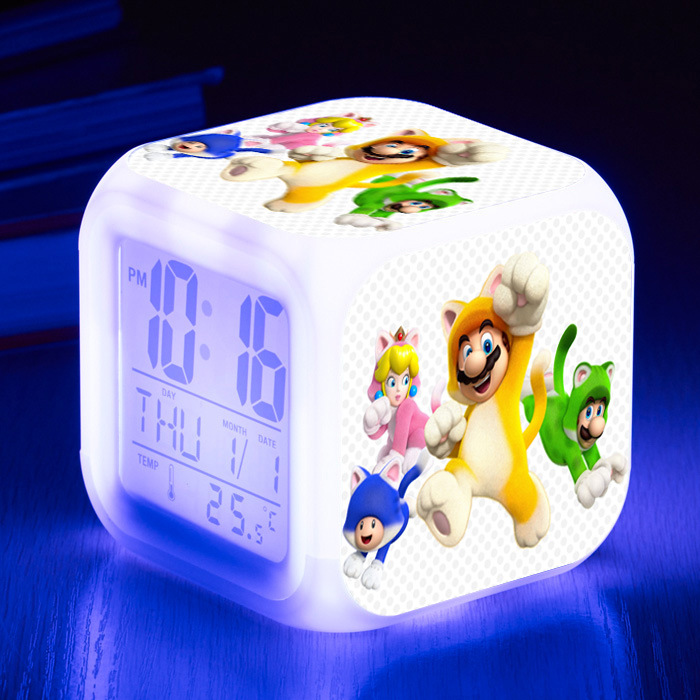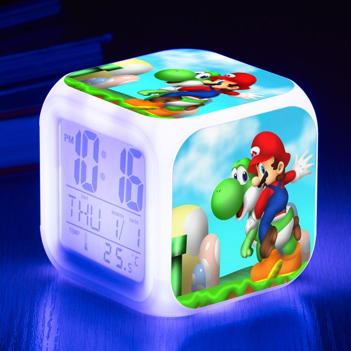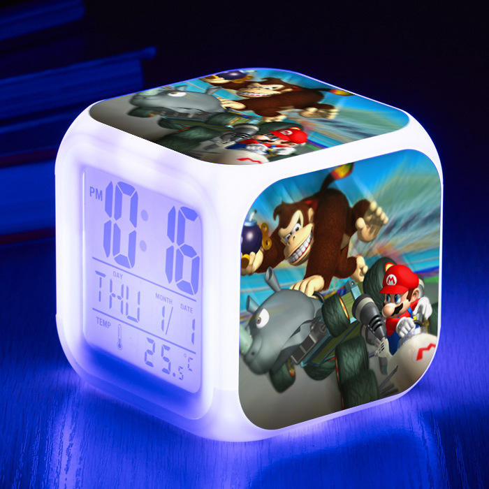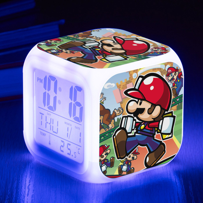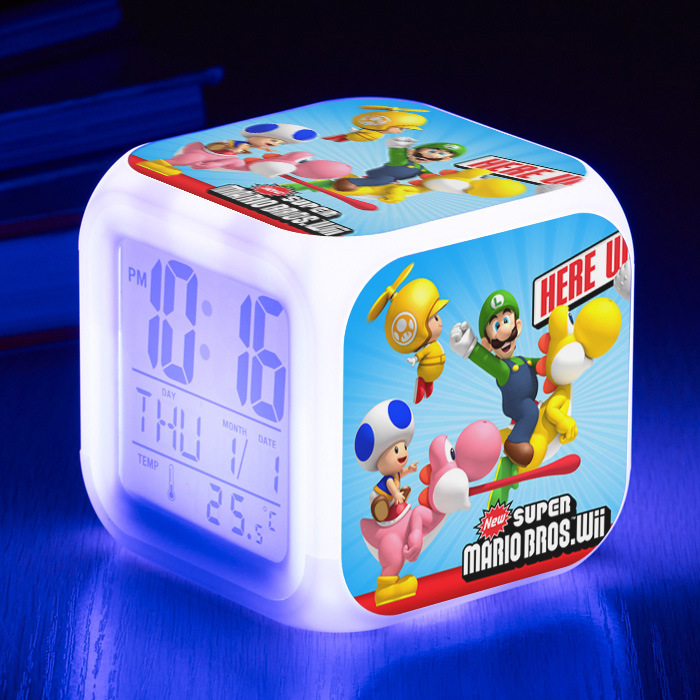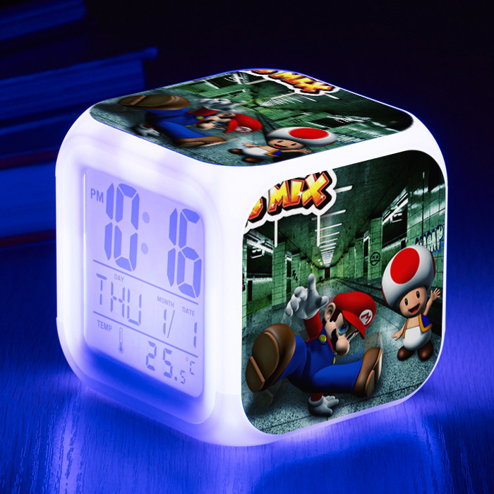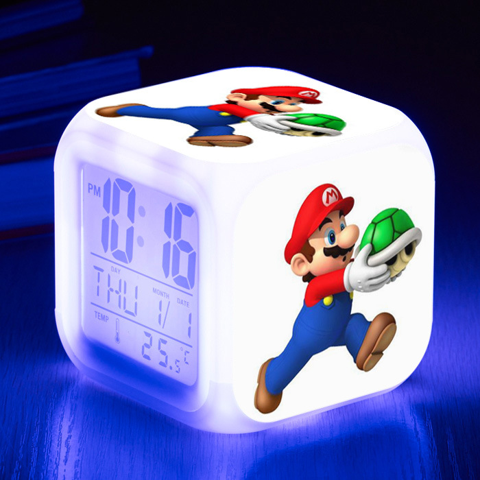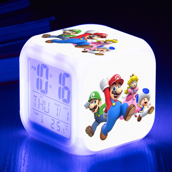 41-73 супер Марио красочный обесцвеченный будильник для детей день рождения подарок квадрат LED креативный маленький будильник