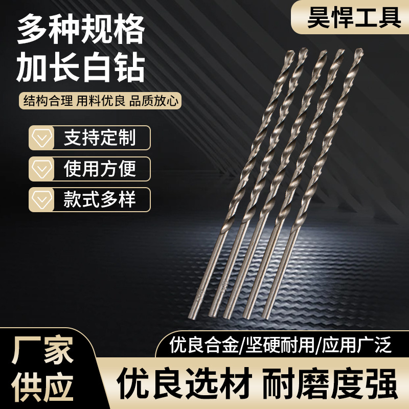 Заводская цена оптом удлиненное спиральное сверло для утюга тонкое сверло из нержавеющей стали с прозрачным краем белое сверло из высокоскоростной стали с прямой ручкой