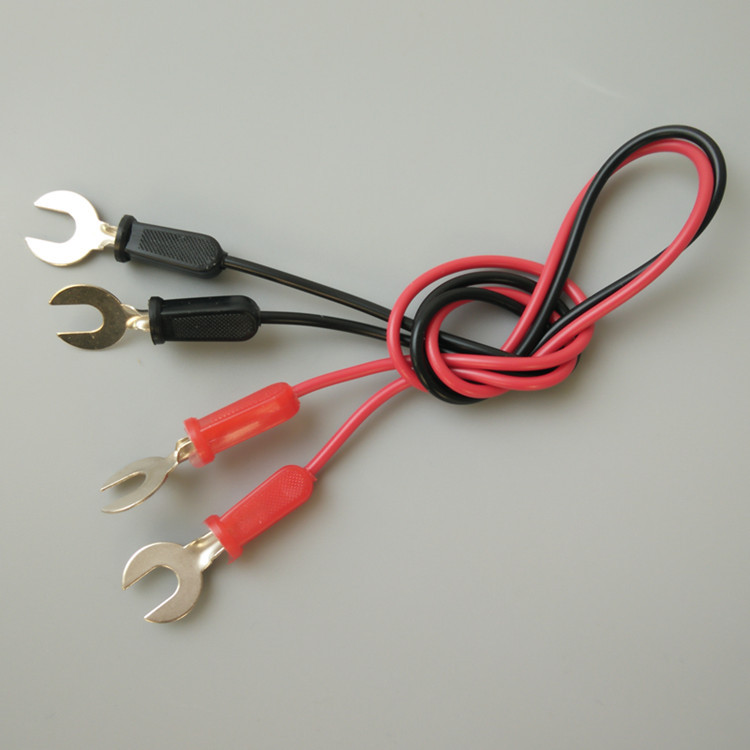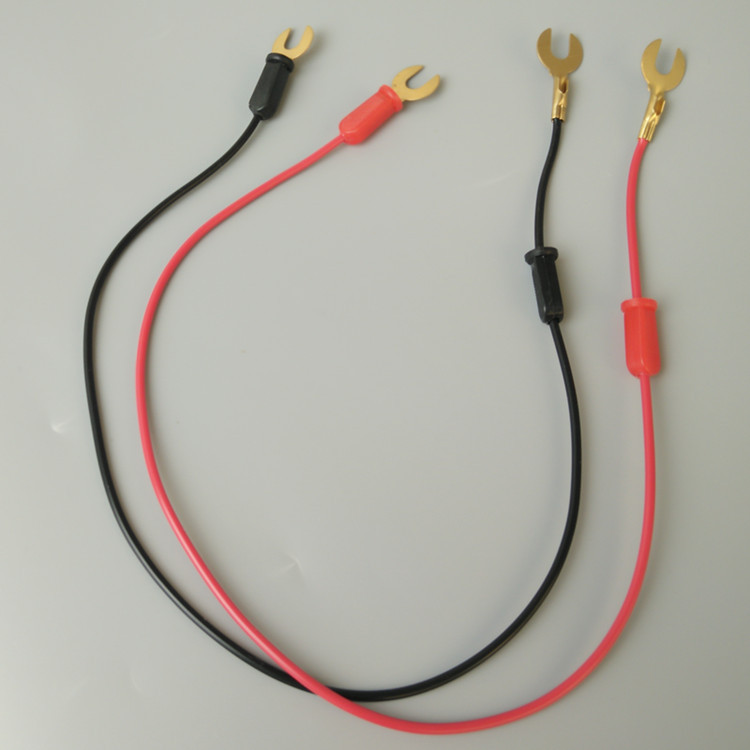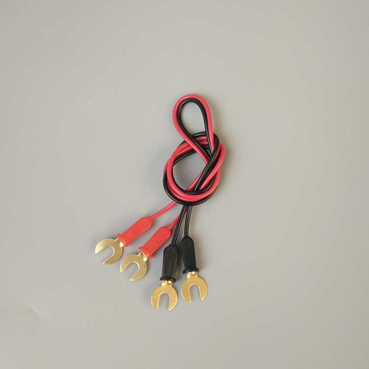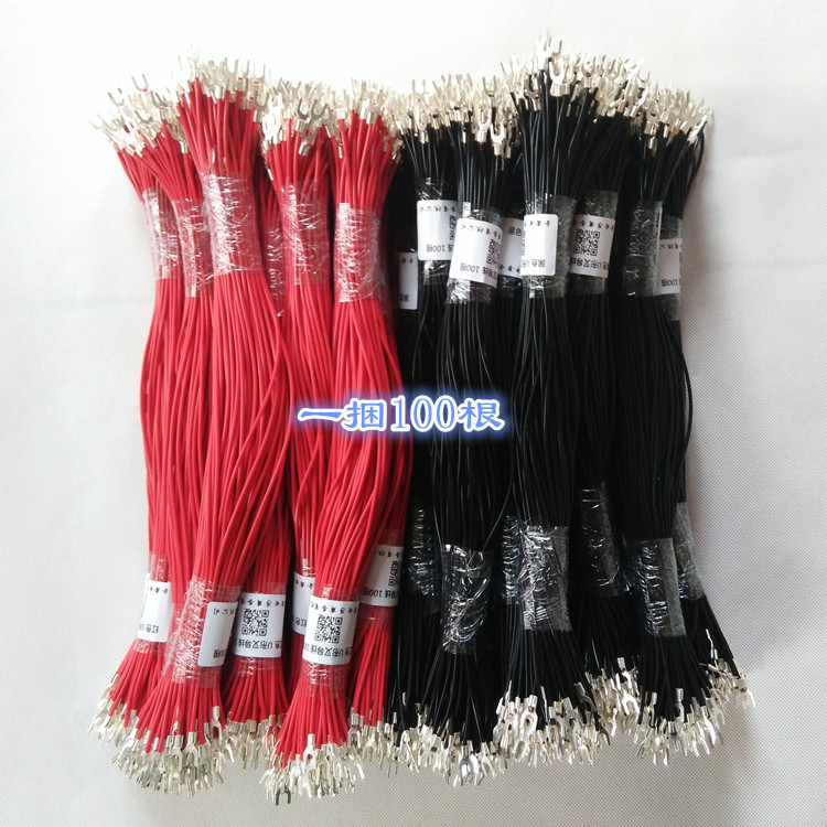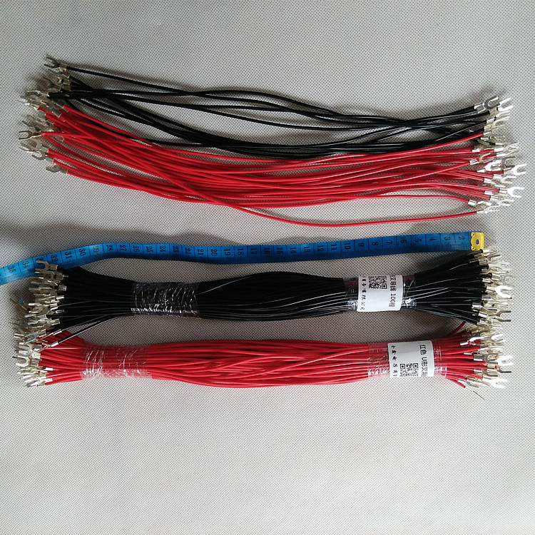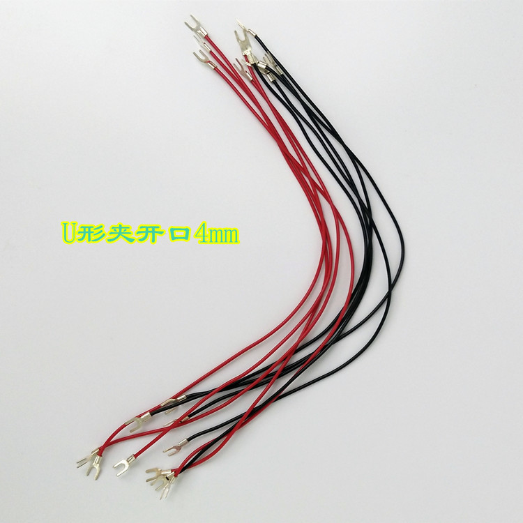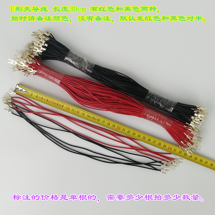 本款导线(U型导线)价格是单根的,有红色和黑色两种。导线采用0.3平方16股铜芯线,长度是30cm,U形夹开口4mm,U形夹材料是铜。也可以定做各种长度的。