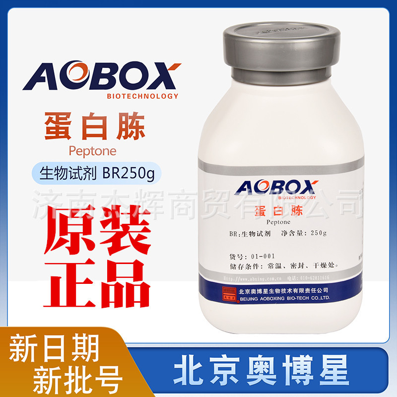 蛋白胨是将肉、酪素或明胶用酸或蛋白酶水解后干燥而成的外观呈淡黄色的粉剂,具有肉香的特殊气息。蛋白质经酸、碱或蛋白酶分解后也可形成蛋白胨。在胃内蛋白质的初步消化产物就是蛋白胨。蛋白胨富含有机氮化合物,也含有一些维生素和糖类。它可以作为微生物培养基的主要原料,在抗生素、工业、发酵工业、生化制品及微生物学科研等领域中的用量均很大,可以用来治疗消化道疾病;不同的生物体需要特定的氨基酸和多肽,因此存在着各种蛋白胨,一般来说,用于蛋白胨生产的蛋白包括动物蛋白(酪蛋白、肉类)和植物蛋白(豆类)等两种。