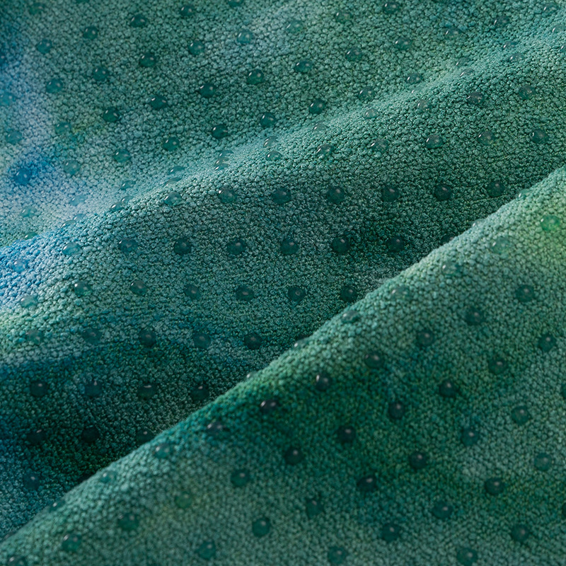 瑜伽铺巾也是瑜伽用品套装的一种,由于练习瑜伽时身体多会排出大量汗水,而滴在瑜珈墊上,造成粘贴不舒服的情形,此时可使用此高吸水性的铺巾铺在瑜珈垫上,有效吸附汗水;面料原料不含棉制品中的糖胶质,具有抑菌作用,防止做瑜珈时,某些脸部动作接近瑜珈垫而吸入细菌或尘螨;背面有防滑胶粒,可使铺巾固定在垫子而不会滑动,有效辅助瑜珈运动的伸展与平衡,提升运动 与舒适。在运动过程中胶粒的凹凸对脚底,背部有很好的按摩作用,促进血液循环;可依瑜伽运动姿勢有效的滚动结合,让您身心放松与练习的完美辅具,止滑,回复性佳,不易撕裂、而且瑜珈铺巾携带方便、 卫生。