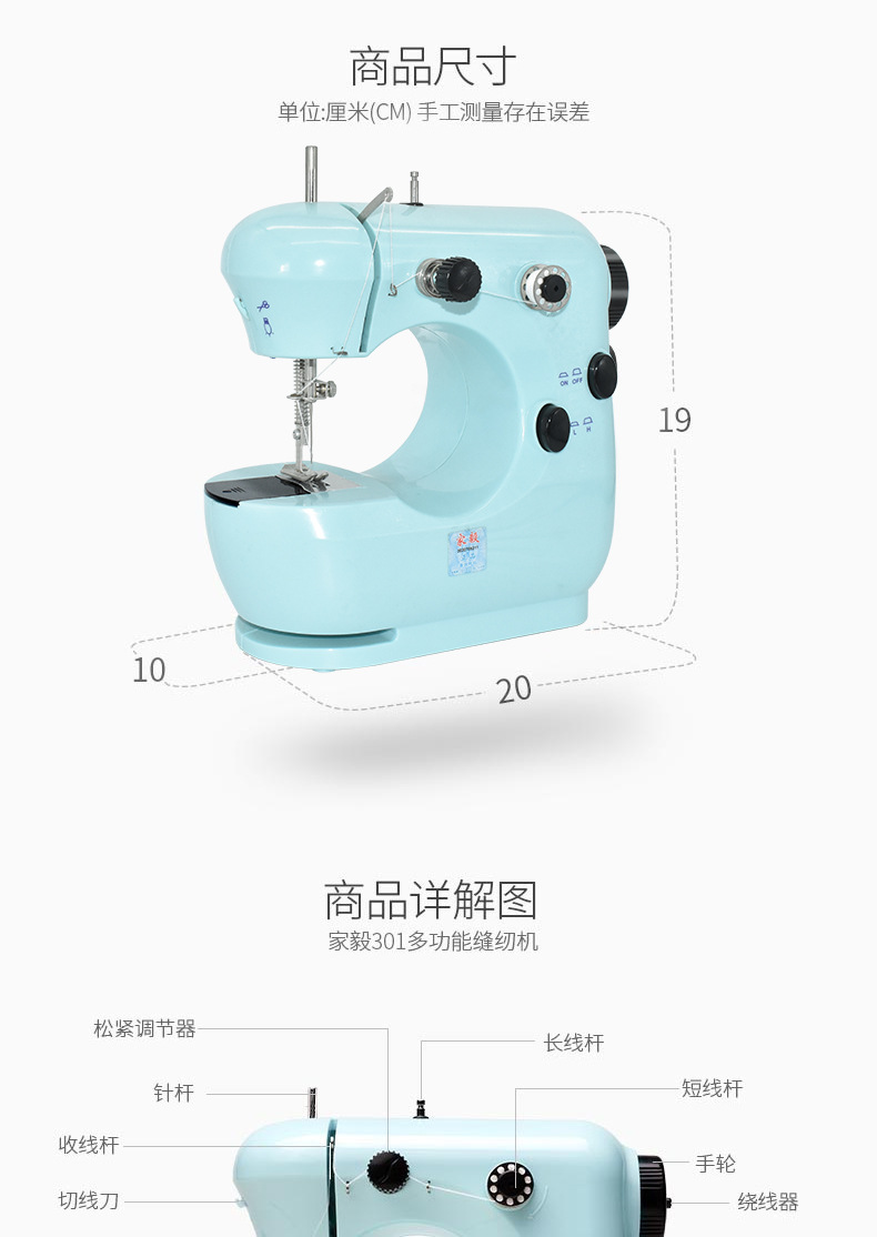 Швейная машинка Jiayi 301, бытовая миниатюрная электрическая портативная настольная швейная машинка из АБС-пластика для международного использования.