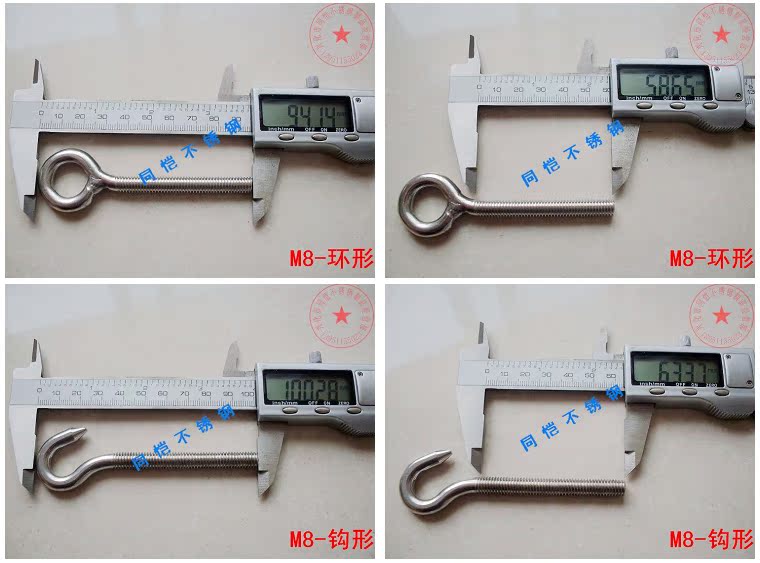 Кольцо M4; Кольцо M5; Кольцо M6; Кольцо M8; Кольцо M10; Кольцо M12; Кольцо M14; Кольцо M16; Крюк M4; Крючок M5; Крючок M6; Крюк M8; Крючок M10; Крюк M12; Форма крючка M14; Форма крючка M16