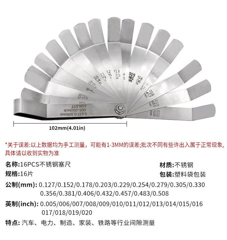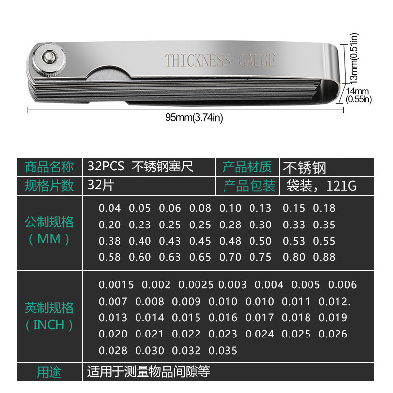 32pcs塞尺带铜片下单300个以上享有优惠价,有需要联系客服