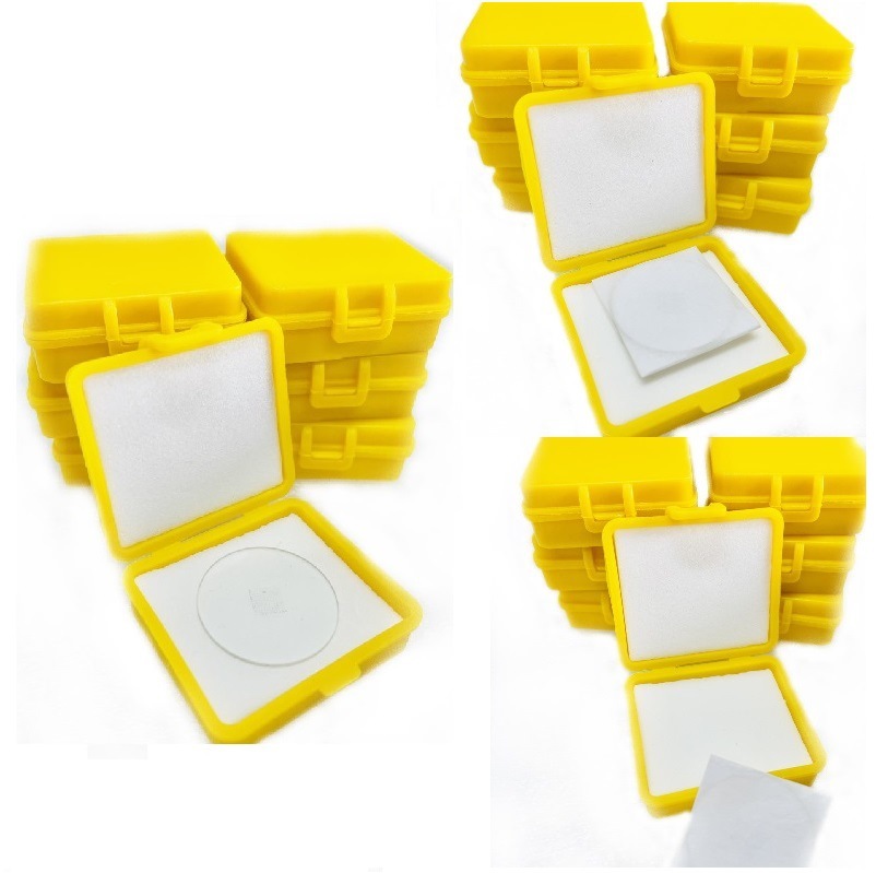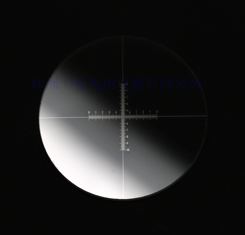 此款目镜测微尺直径有7种,分别为20.4mm、21mm、24mm、25mm、27mm、28mm、29mm,厚1.5mm,由纵横100个0.1mm格值的刻度组成,总长10mm,线条延伸至玻片最边缘。