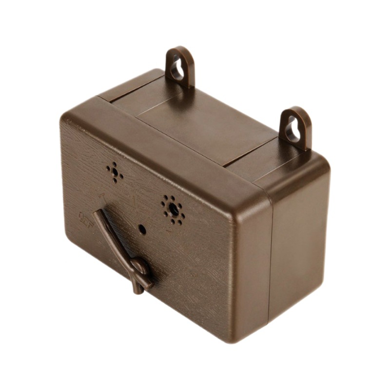 专为室外使用而设计, 户外超声波止吠器耐用且防水。有3档灵敏度 (有效范围在在4.5,9到15.24米),以及一个测试档。需要9伏电池,(不包括在内), 电池平均寿命2个月。户外超声波止吠器有电源指示器, 当你离开时可以设置为“Off”来保护电池。
