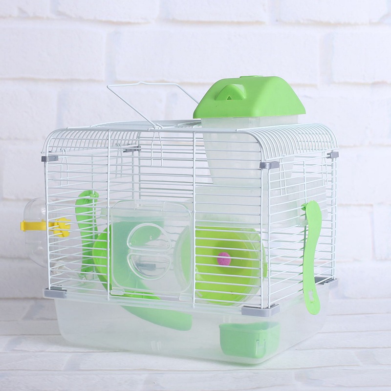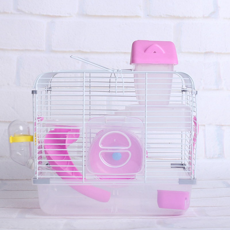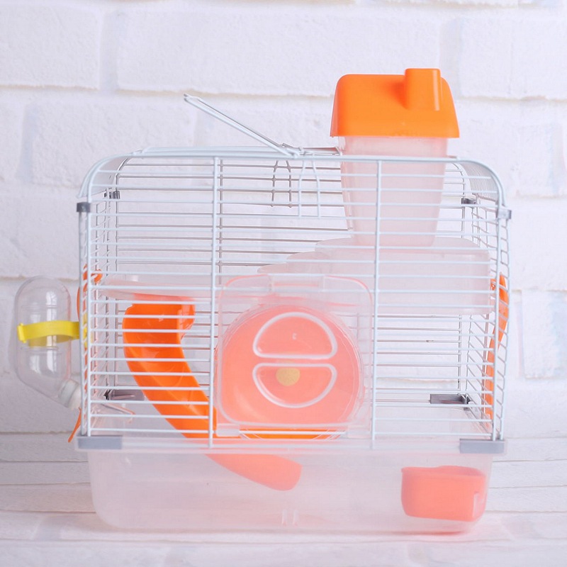 双层水晶大城堡仓鼠笼,规格:长28CM,宽21CM,高30CM。此笼可作仓鼠金丝熊育婴生长生产笼。内配小屋、二层平台、滑梯、真空饮水器、食盆、跑轮,配套齐全,美观漂亮,豪华别墅型。五色可选,蓝色,粉色,巧克力色,桔黄,绿色。深底盘,底盆高约7cm,有效防止垫料外溢。亚克力门,塑料卡扣连接设计,让您组装更具有乐趣。