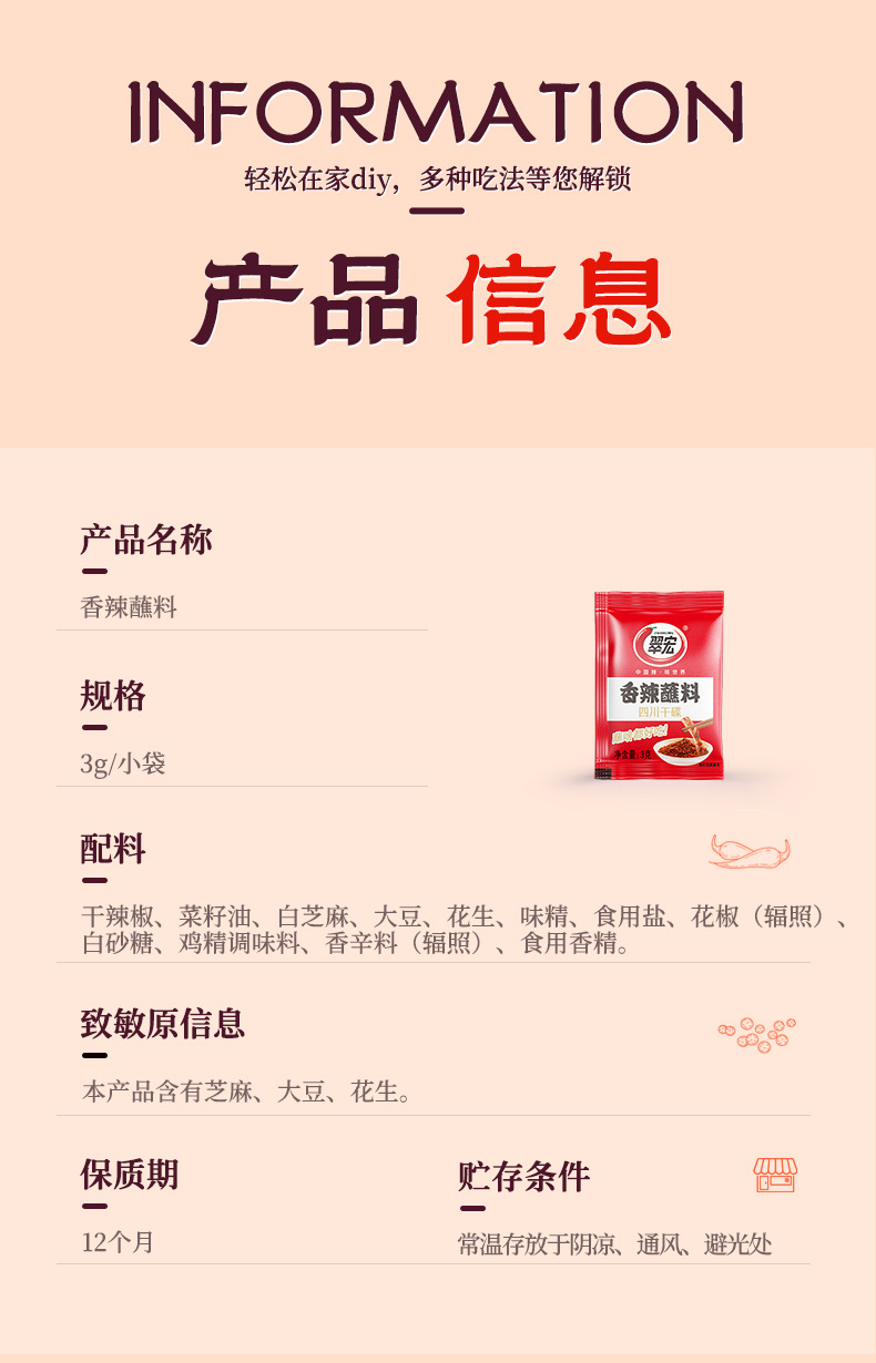 Cuihong пряный соус 3G * 1000 небольших упаковок с лапшой чили, шашлык из горячего горшка, тушеное мясо, смоченное в воде, сухое блюдо для бизнеса