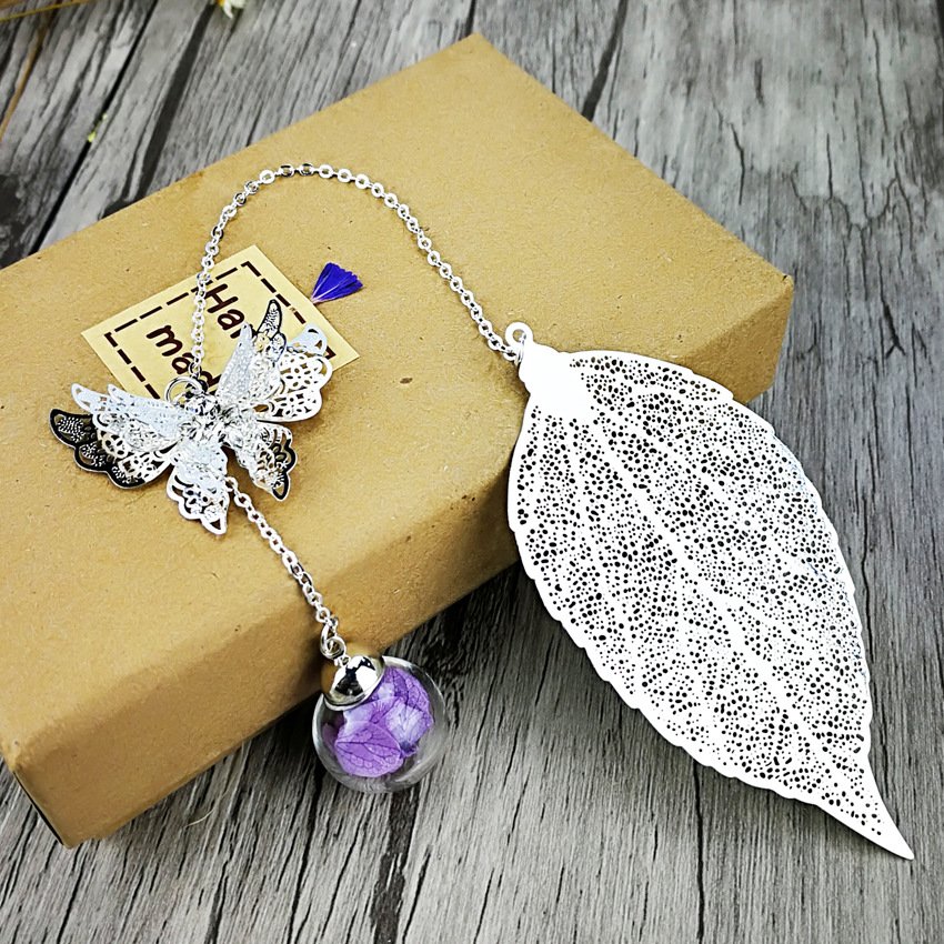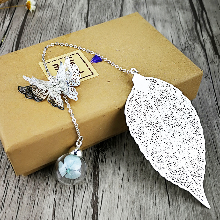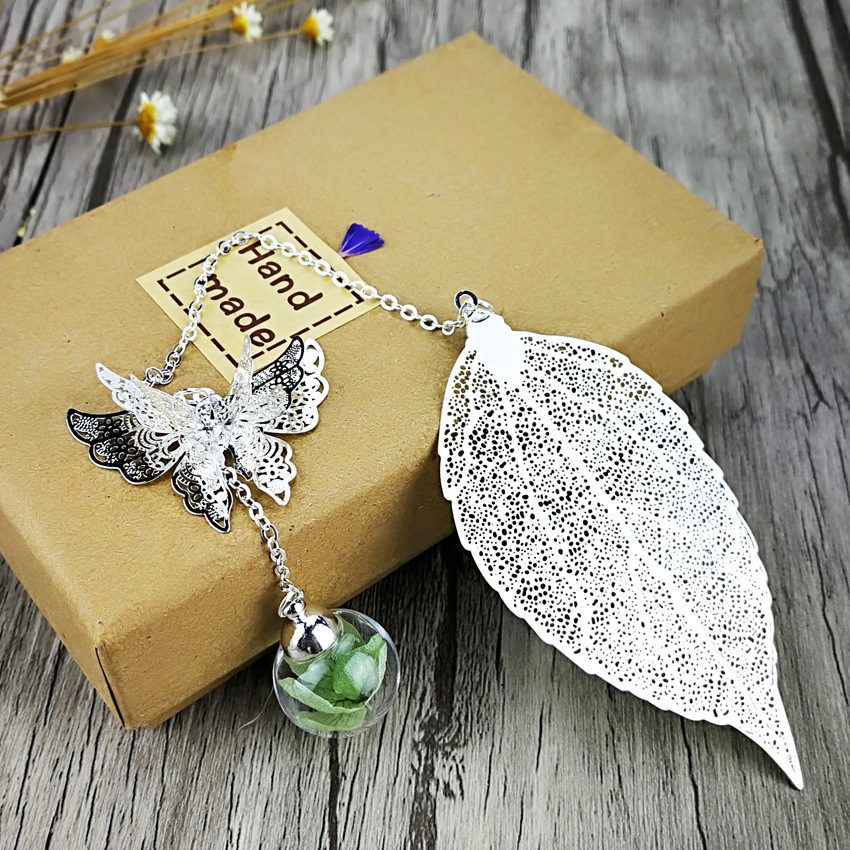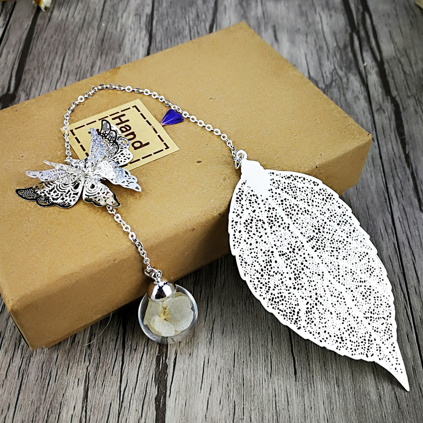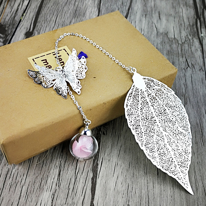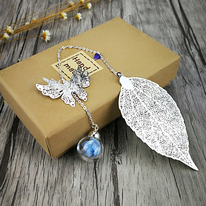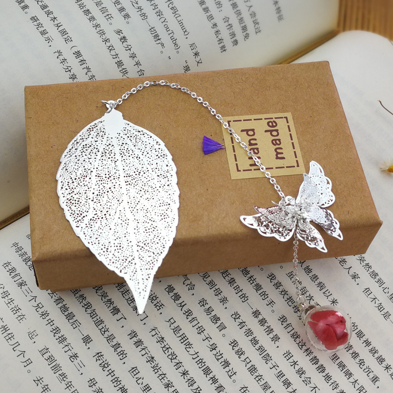 品名:镀银叶子书签 (蝴蝶+叶子+绣球花)